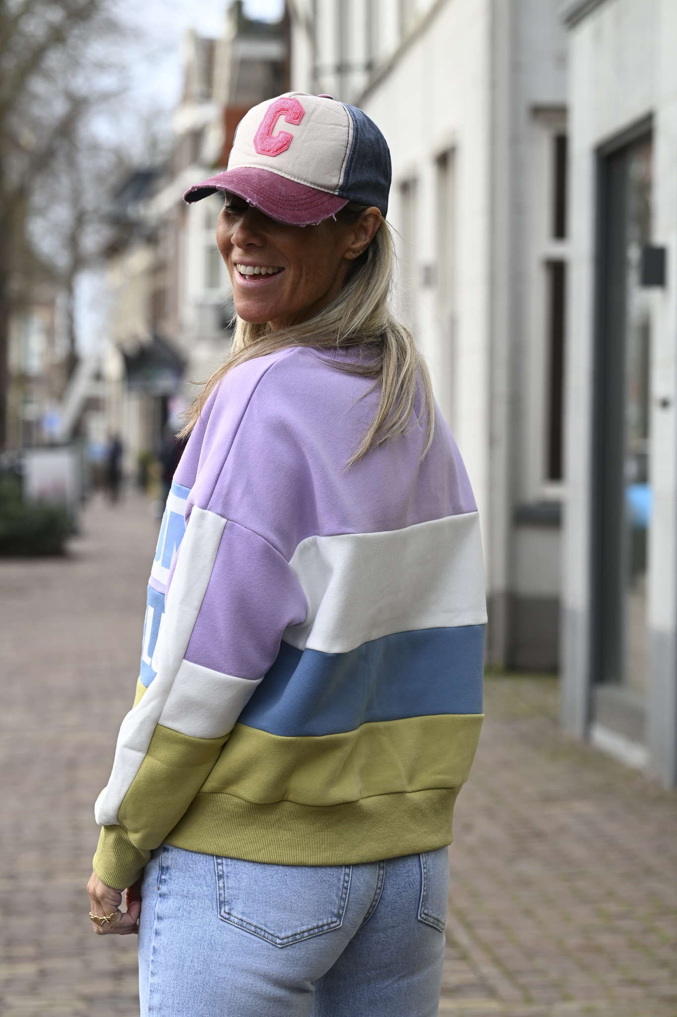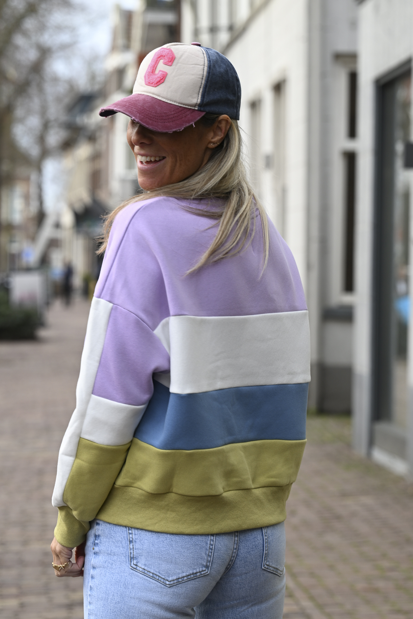 De kleurencombinatie in zachte pasteltinten maakt deze sweater helemaal af. Op de voorkant staat de tekst “ALL DAY LONG NOTHING CLUB”. Op de foto draag ik maat S/M en ik ben 1.76 m.