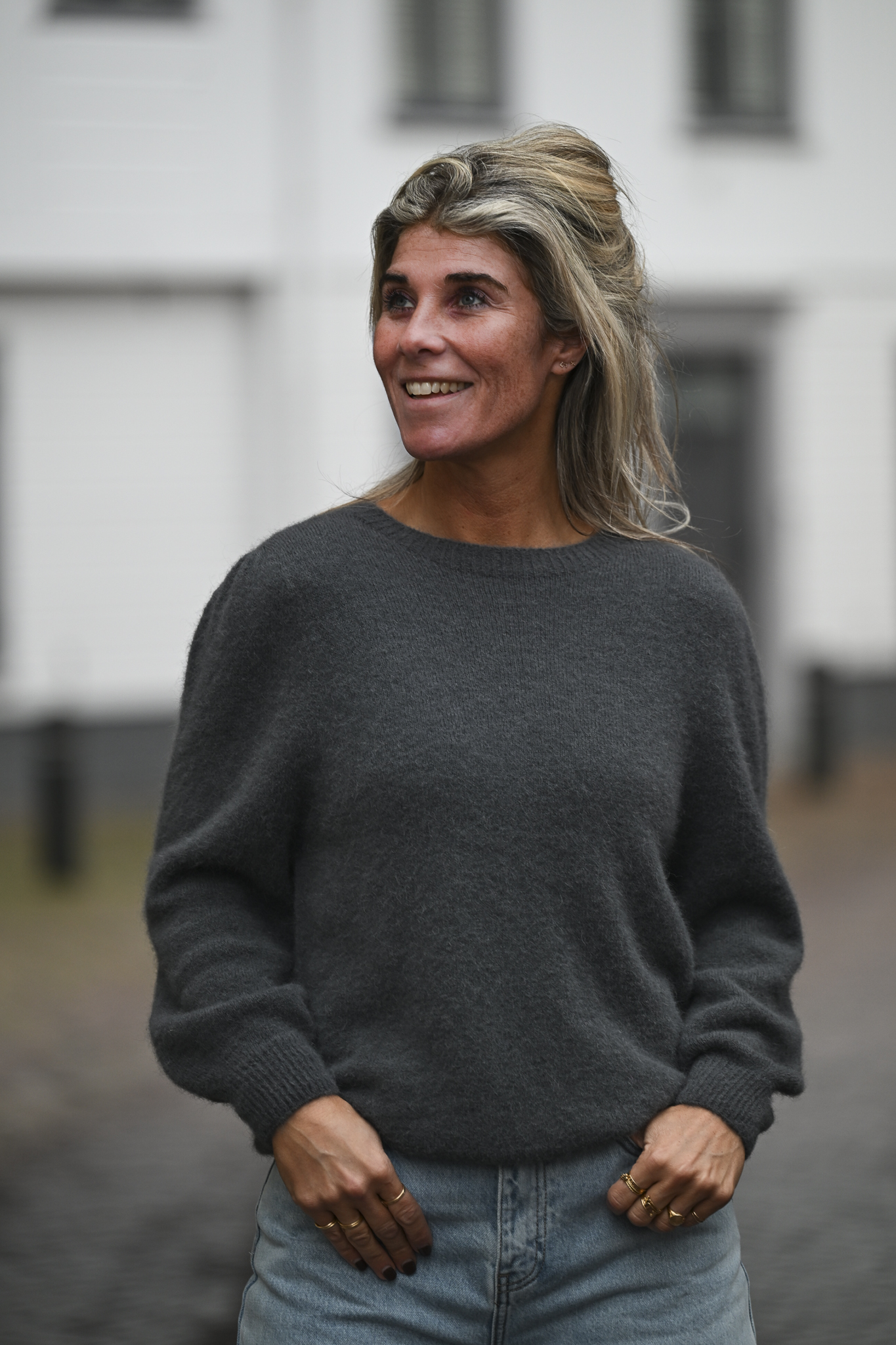 Deze alpaca trui heeft een subtiele plooi op de schouder en pofmouwen, en bevat maar liefst 52% baby alpaca wol, wat hem heerlijk zacht maakt. Verder heeft de trui een ronde hals en elastische mouwboorden. Dit onesize model draag je tot en met maat L/XL.