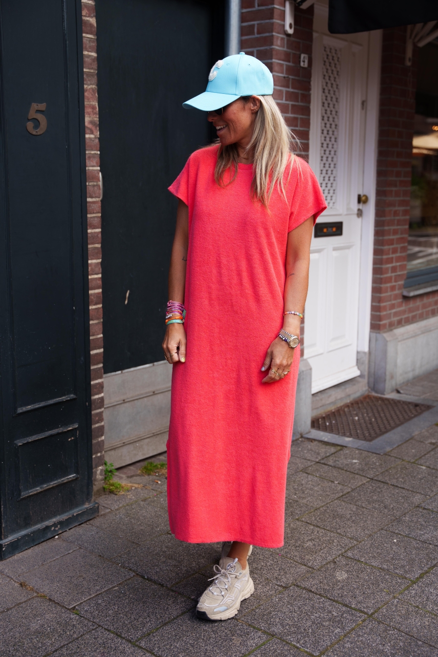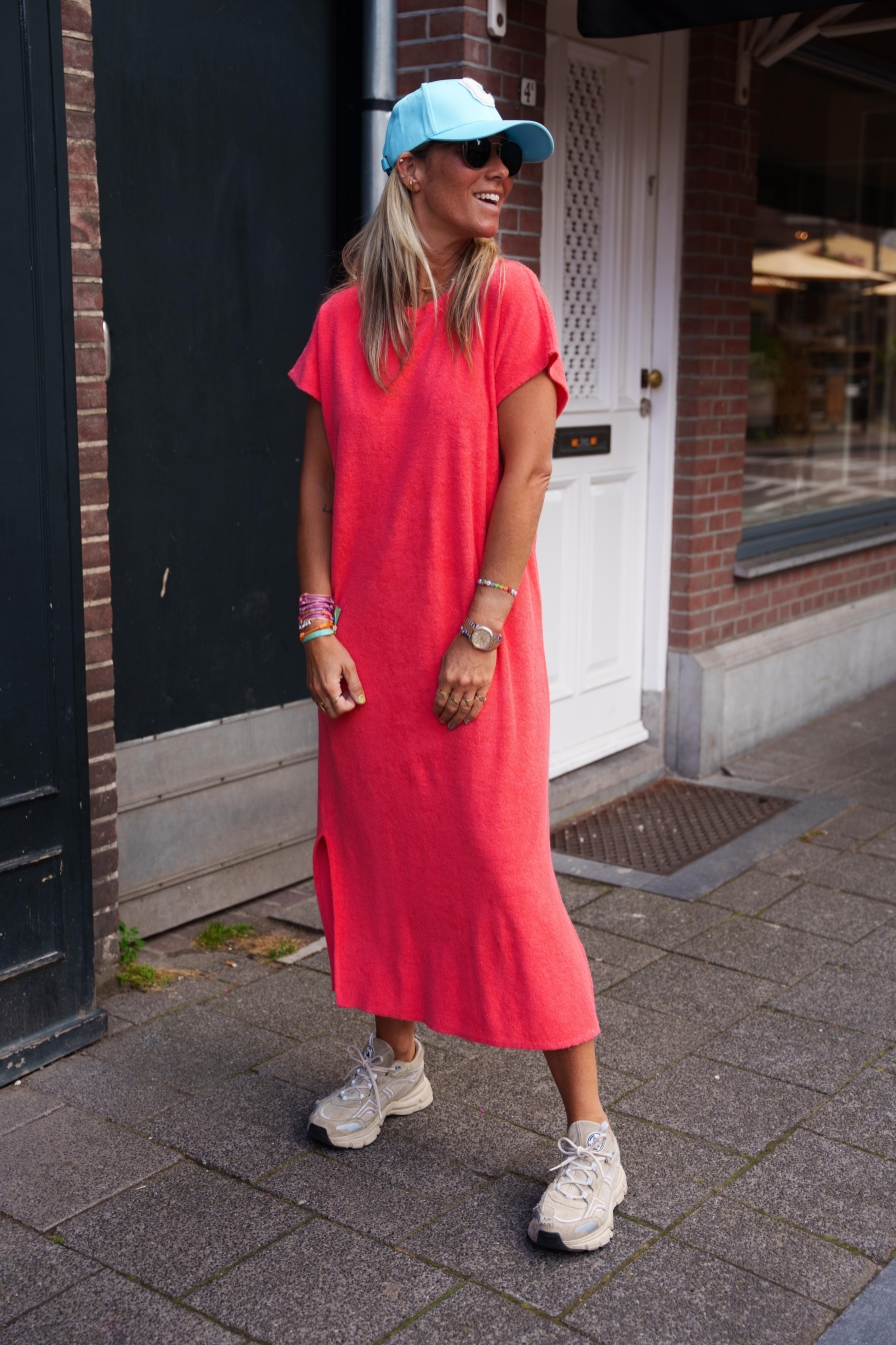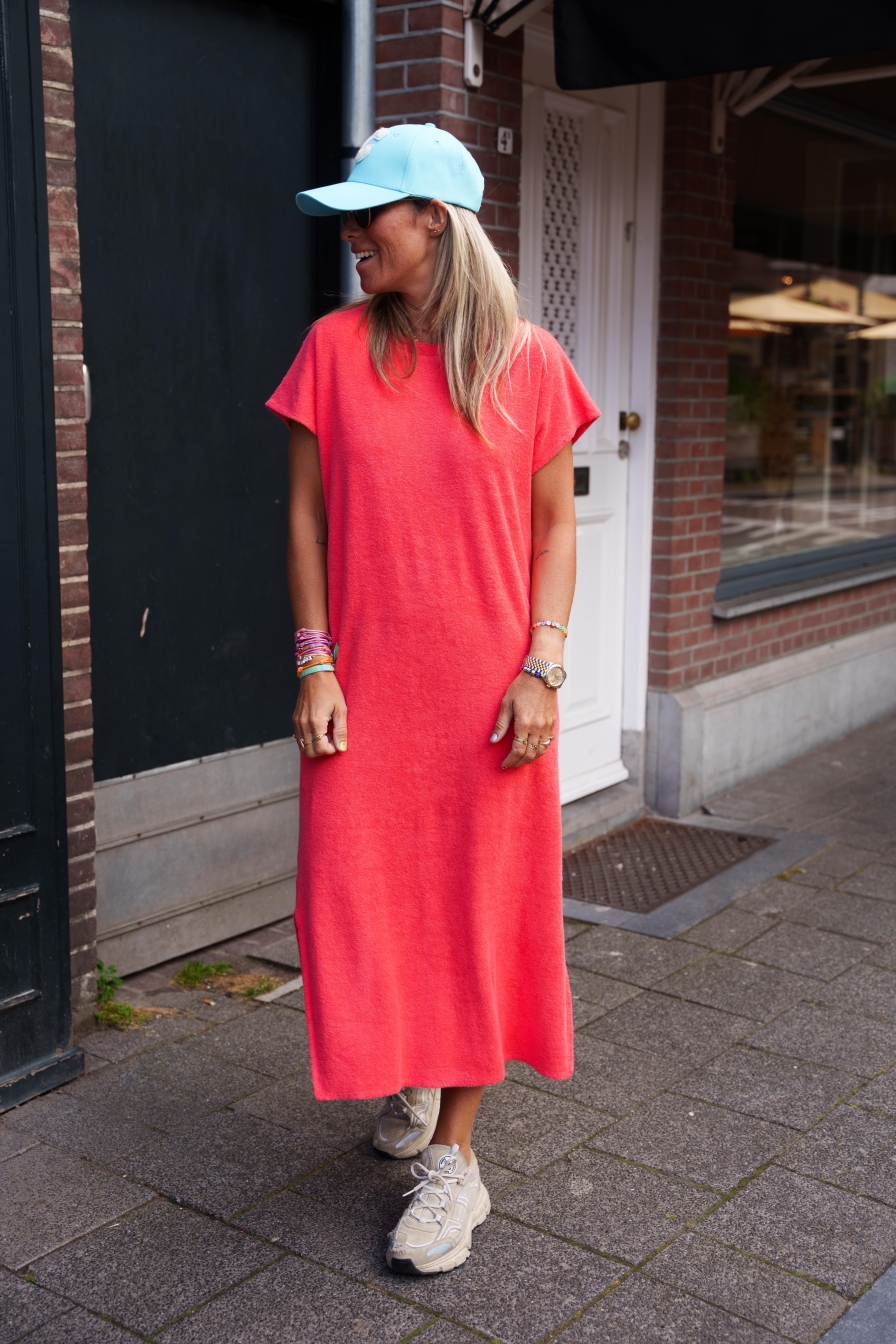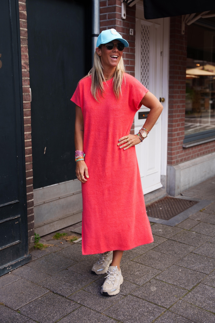 De Badstof Dress Briza is gemaakt van 100% katoen. Deze comfortabele jurk heeft kapmouwen en splitjes aan beide kanten. Dit Onesize...