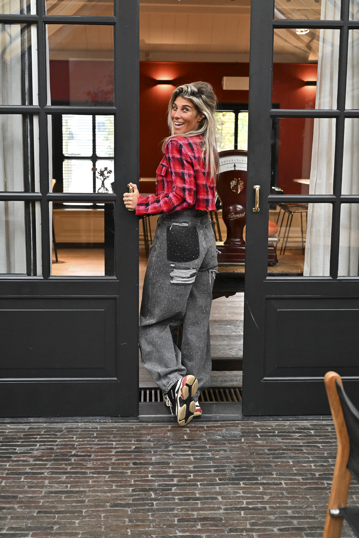 Echte balloon pasvorm! De jeans is all-over afgewerkt met pailletten en heeft een destroyed look, maar blijft netjes gesloten (je kijkt niet op je huid). Ik draag maat M op de foto en ze vallen perfect op maat.