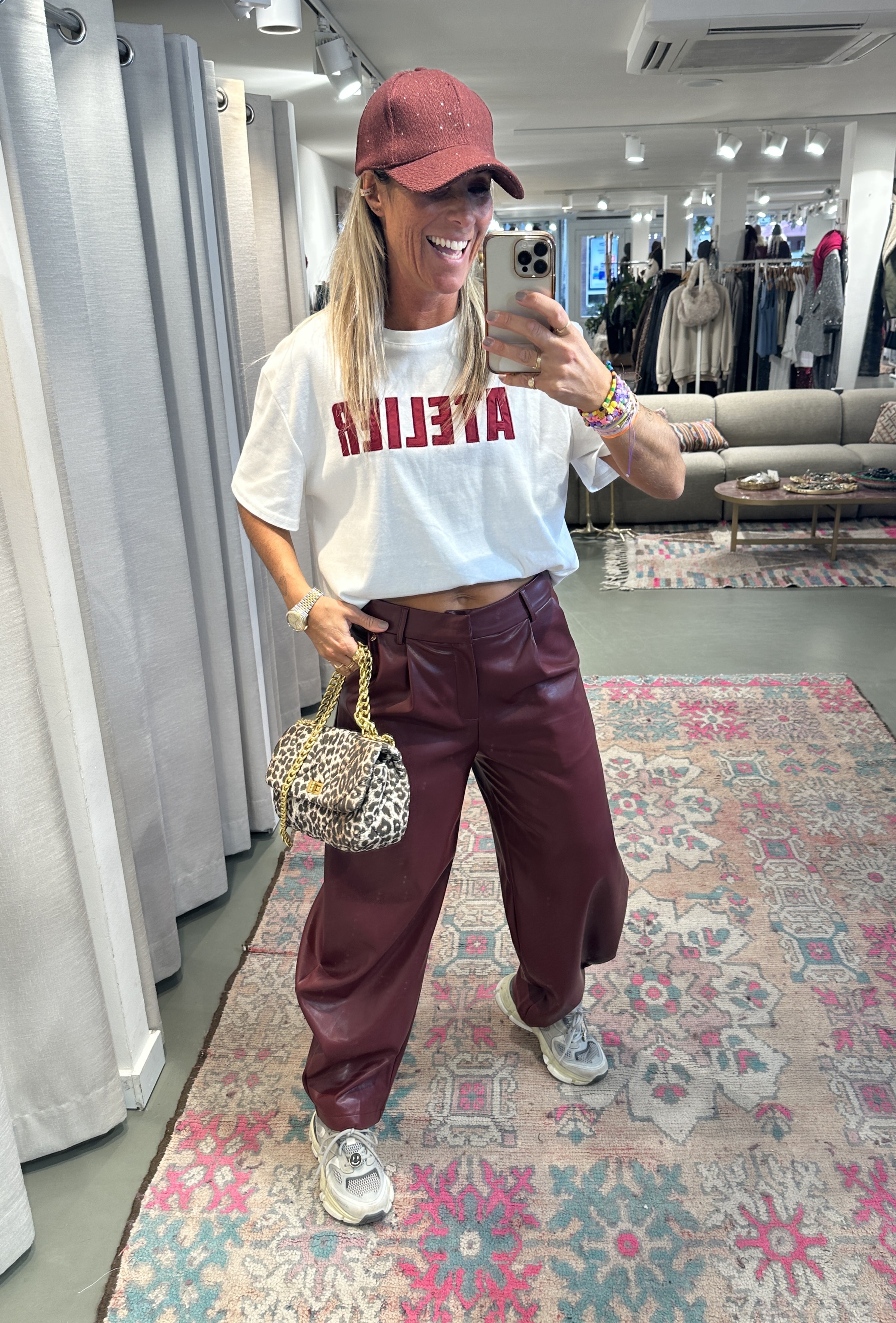 De barrel broek is er nu ook in PU en is dé trend van nu. Deze broek valt goed op maat en heeft een comfi fit. Ik draag maat M op de foto en ben 1.76 m lang.