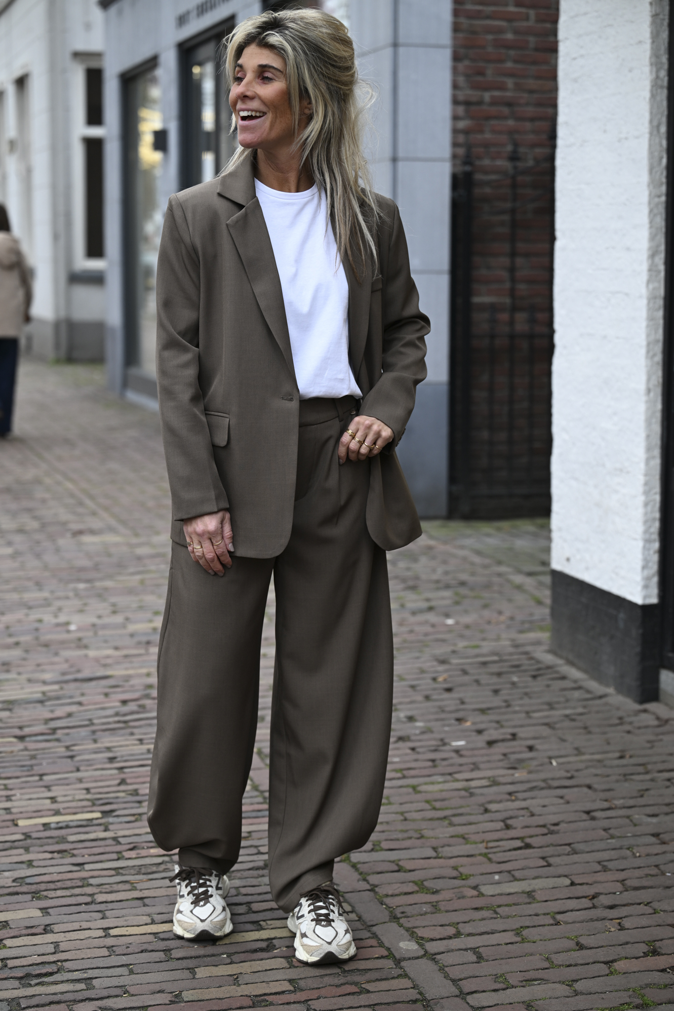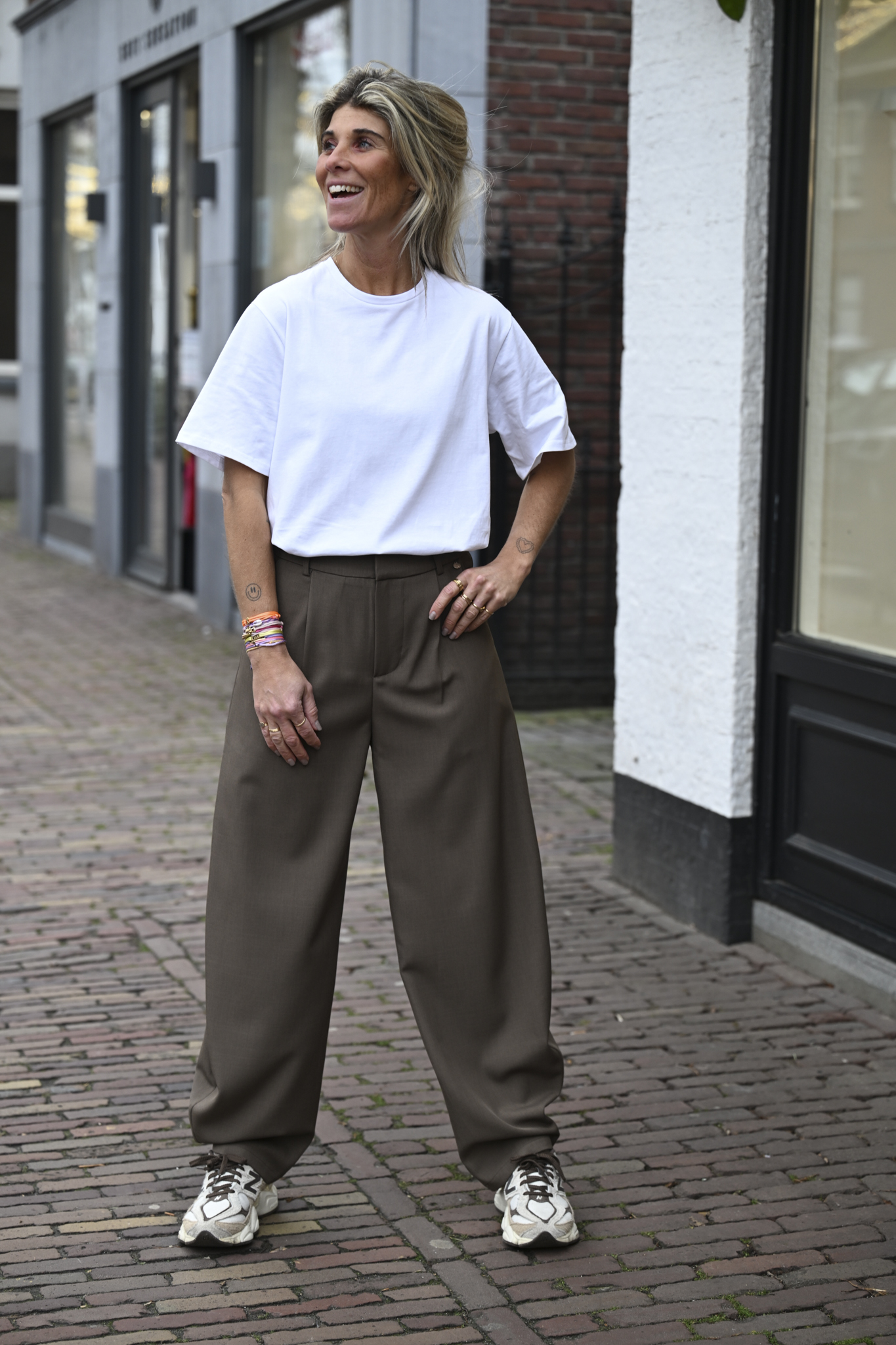 De barrel pantalon is dé trend van nu. Deze broek valt goed op maat en heeft een comfi fit. Ik draag maat M op de foto en ben 1.76 m lang.