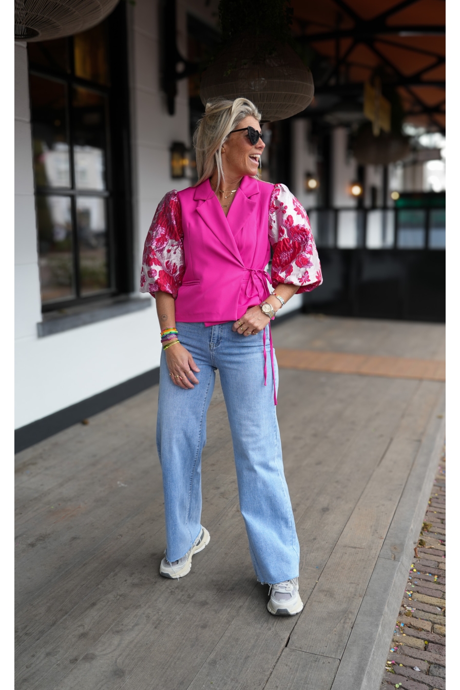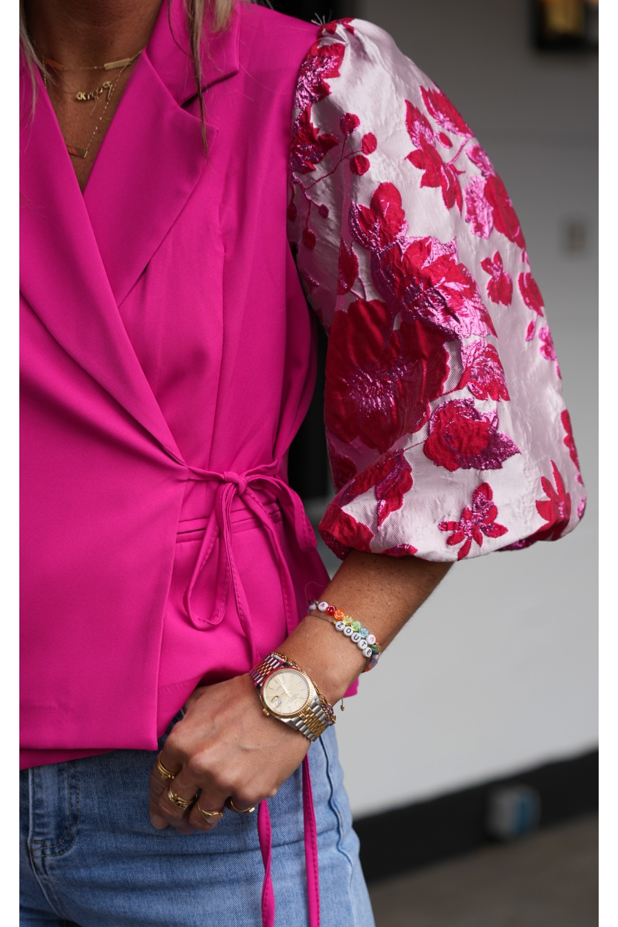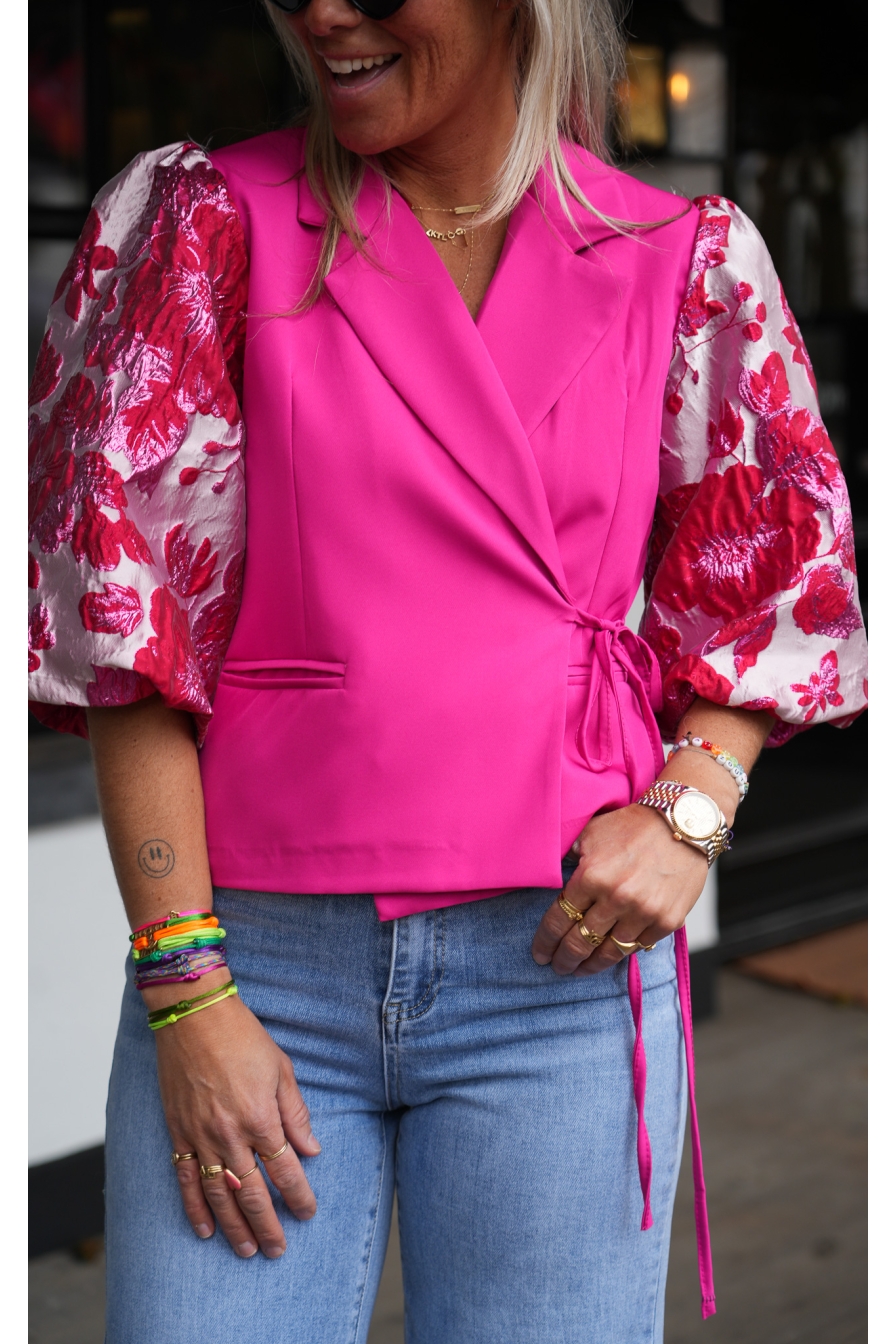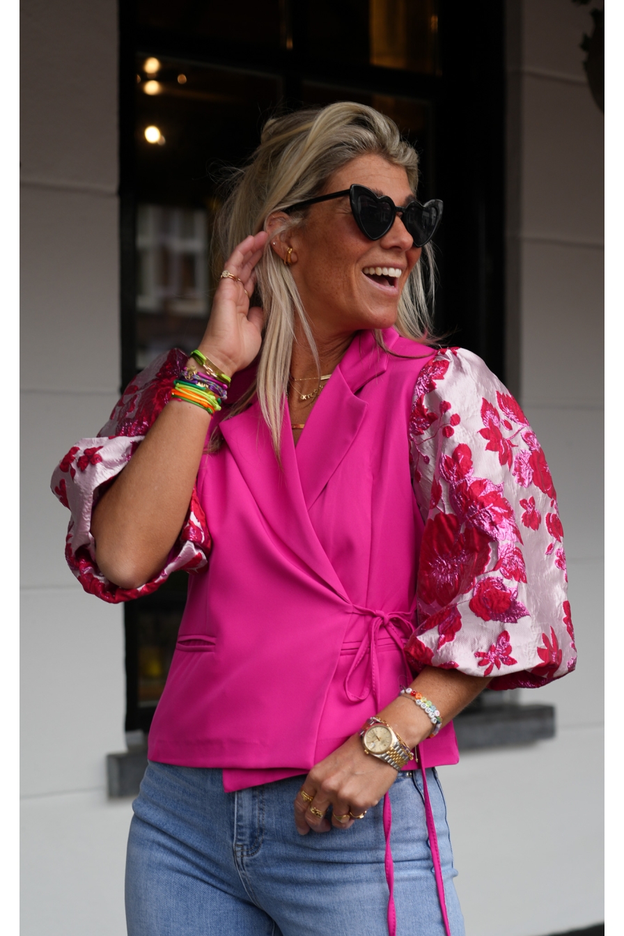 Blazer/Top Asia heeft prachtige pofmouwen en verstelbare koordjes, zodat je het jasje helemaal naar wens kunt stylen. Strik erin, en...