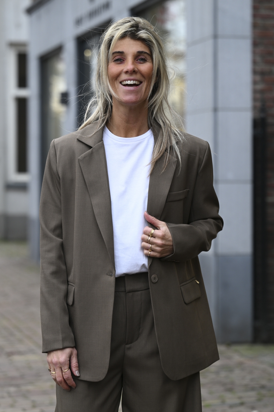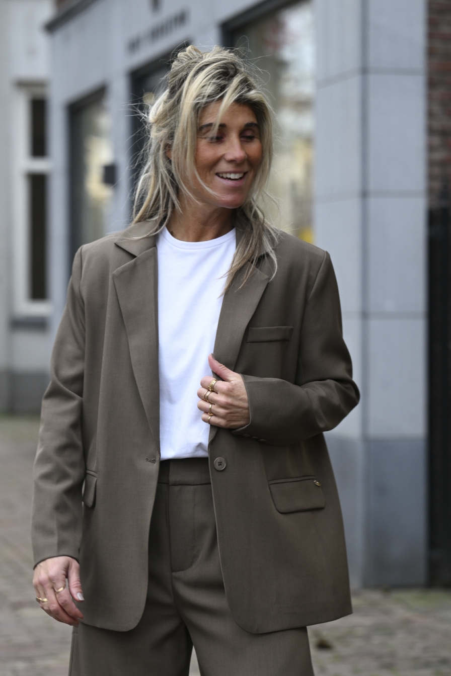 Stylingtip: combineer Blazer Ireen met Pantalon Ireen en style af met het witte shirt Madelief voor een complete look.
