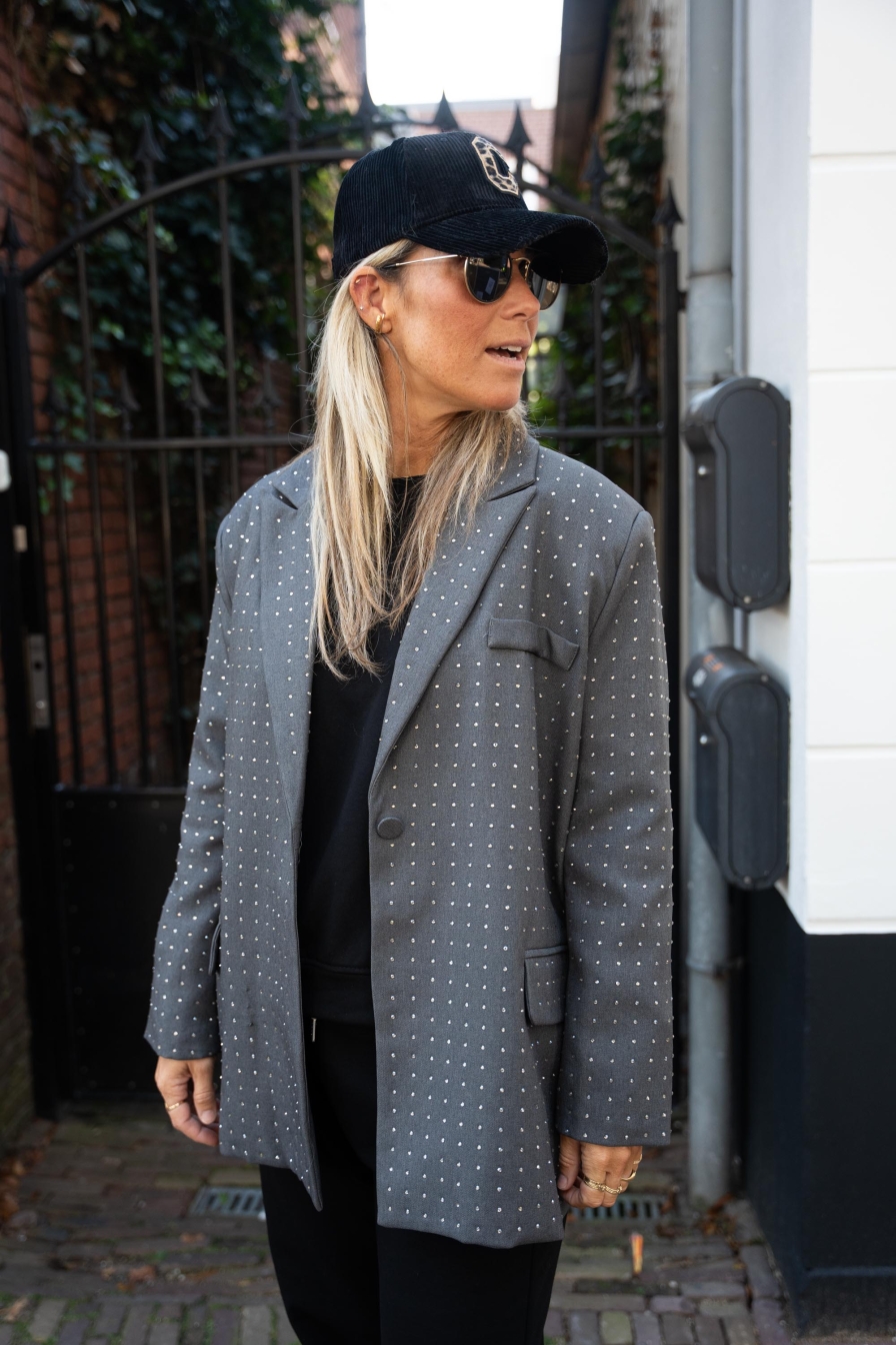 Blazer valt oversized en is eindeloos te combineren door de kleine strass-steentjes...