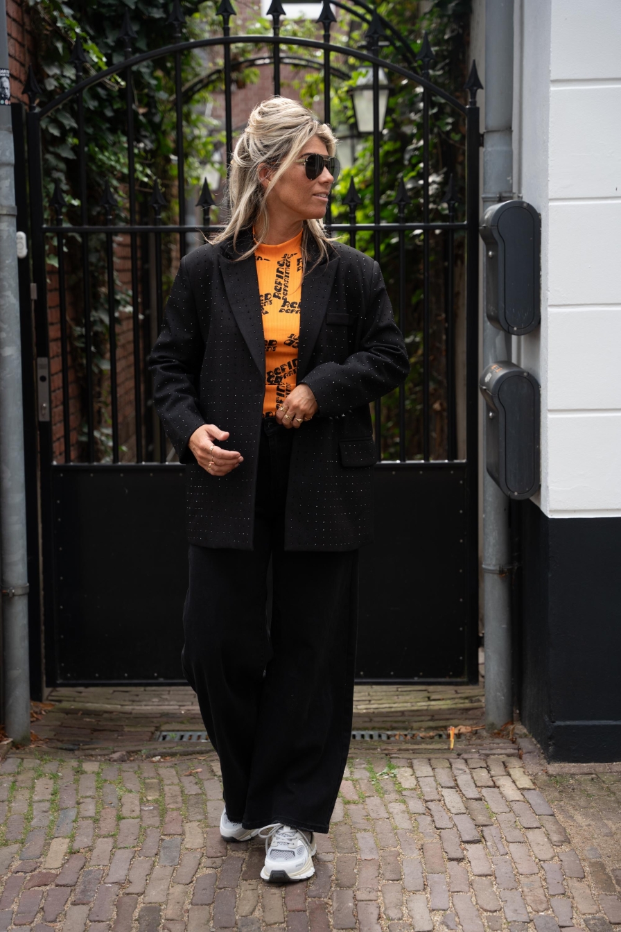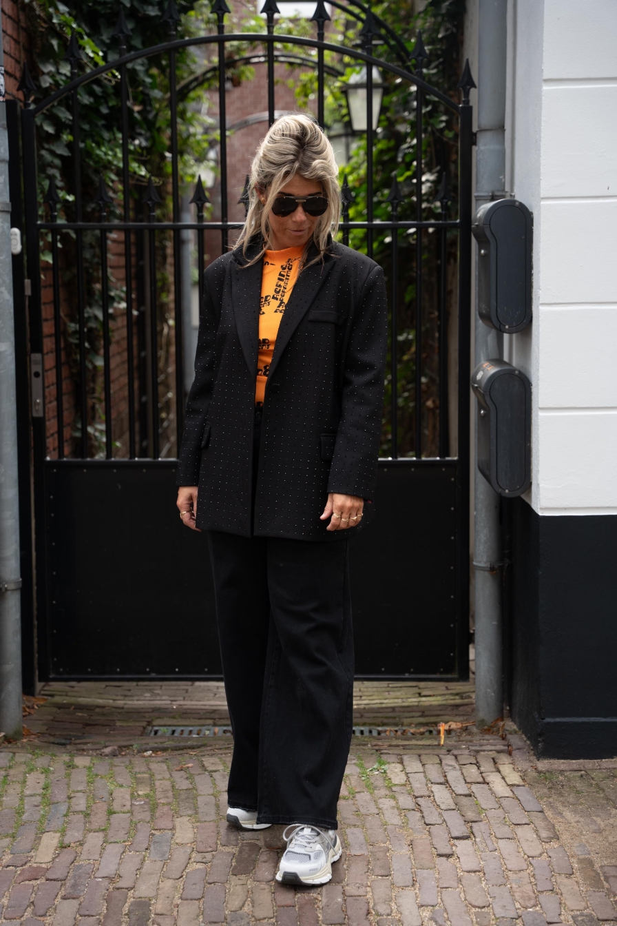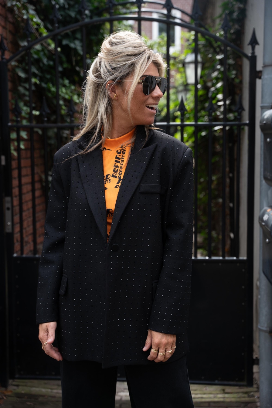 Blazer valt oversized en is eindeloos te combineren door de kleine strass-steentjes heeft de blazer een extra shiny look!