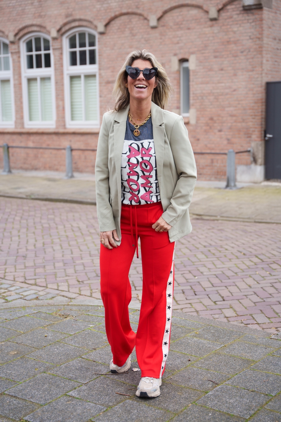Blazer liedwien Zacht Groen / Grijs in de meest trendy lentekleuren! Met zijn vrolijke tinten brengt hij direct een glimlach op je gezicht. Met mijn 1,76 m draag ik een maat M en hij past perfect!