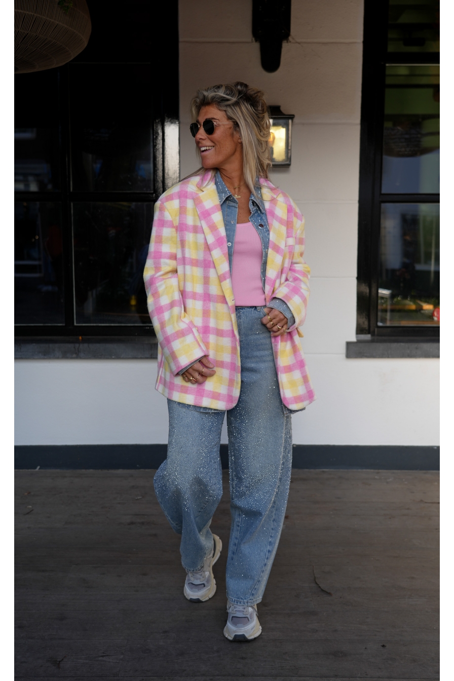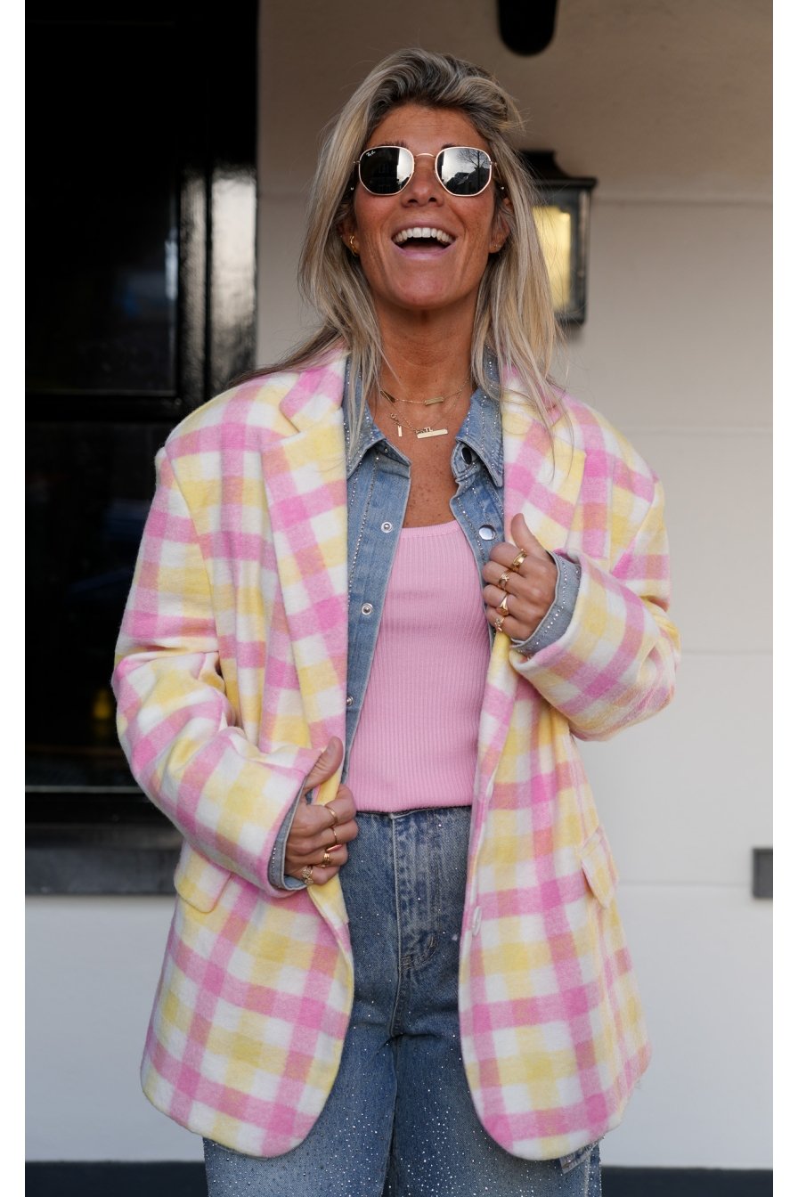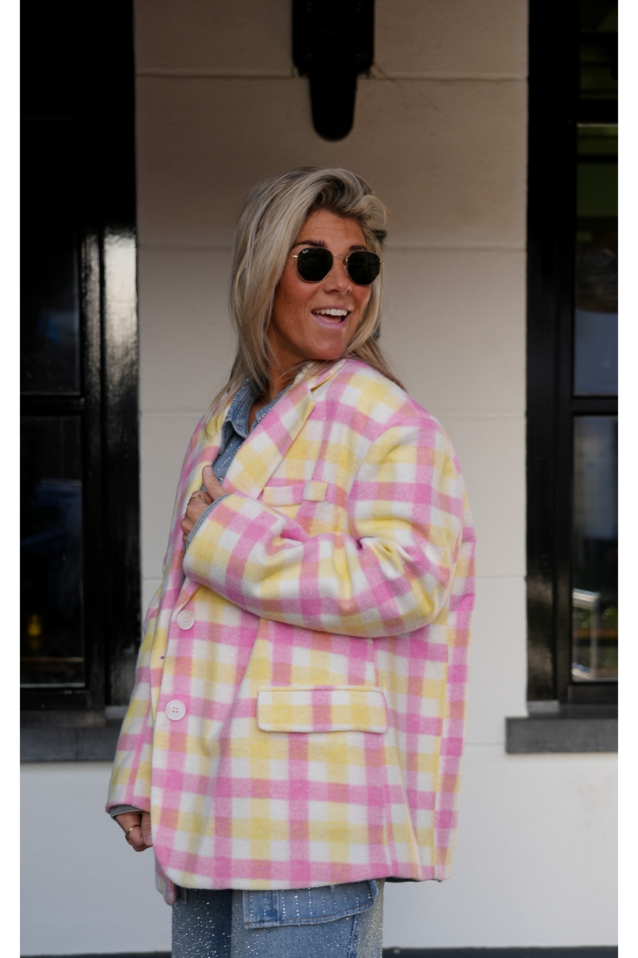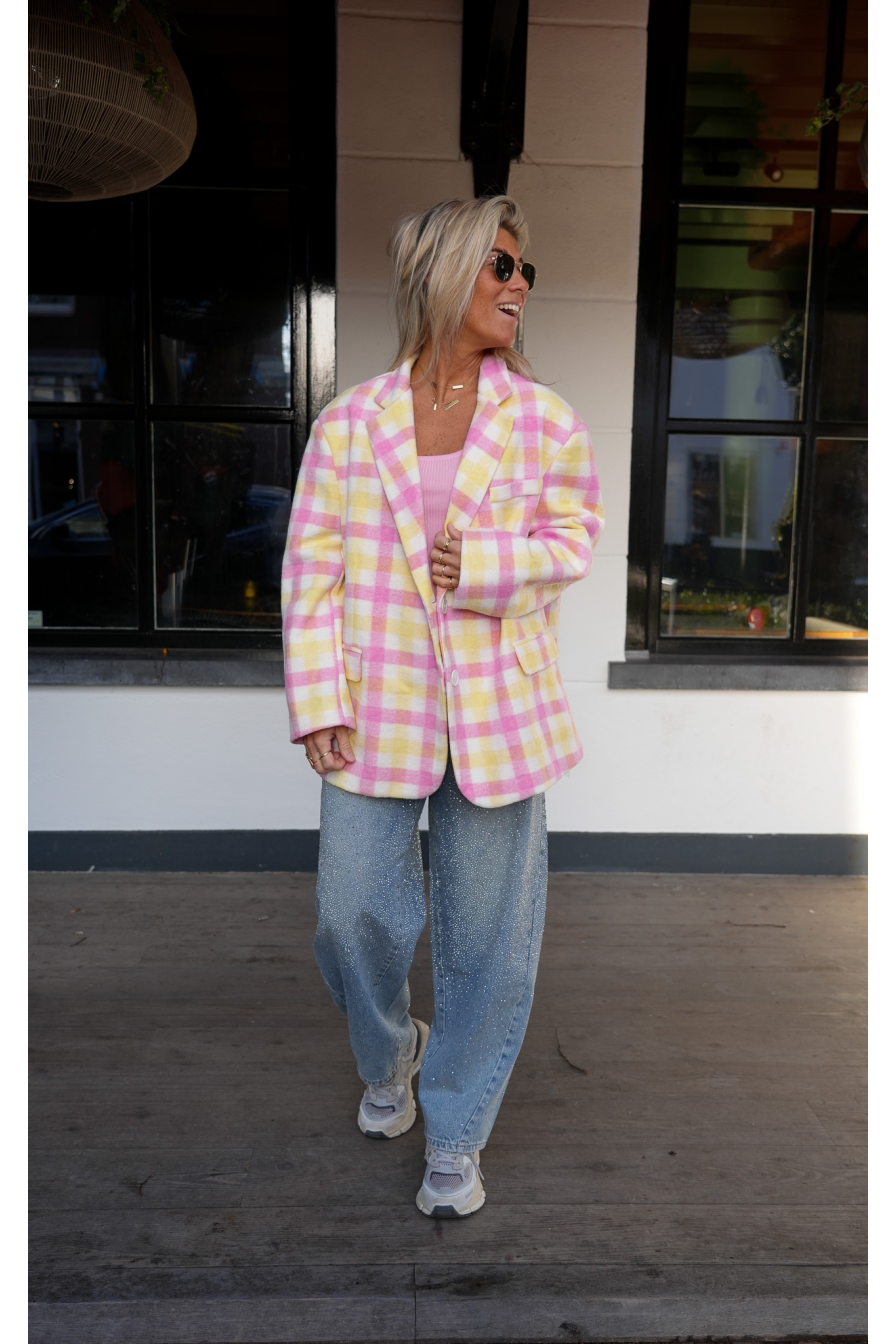 Verzending met DHL !Blazer Yasmine Geel - Roze