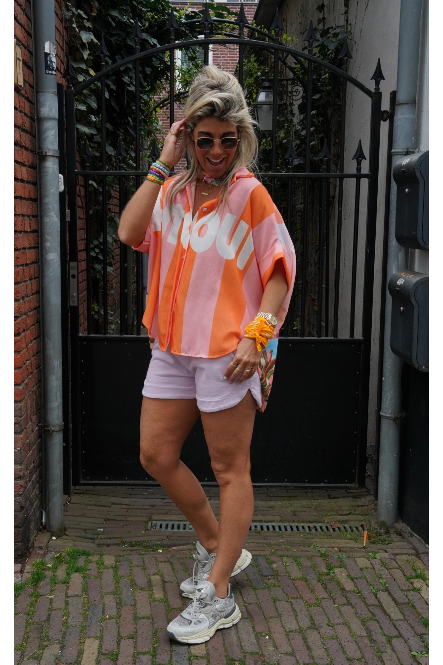 Deze blouse heeft alles wat je zoekt: kapmouwtjes, een waanzinnige summer print en een luchtige mix van linnen en viscose. Het onesize model draag je moeiteloos van maat S tot en met XL (44) en zit heerlijk.