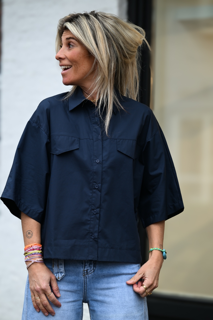 Blouse Fay heeft alles wat je zoekt in de perfecte blouse. Gemaakt van 100% katoen, met een langere achterkant die mooi over de billen valt en twee stijlvolle klepzakjes. Het loose fit model zorgt voor een comfy en effortless look en is draagbaar tot en met maat XL.