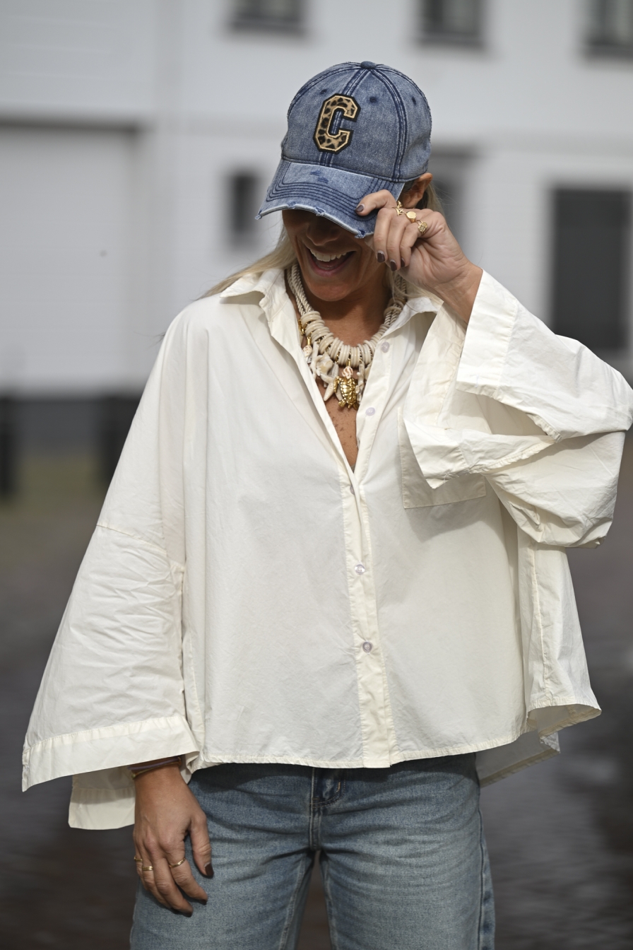 Blouse Faya is gemaakt van 100% katoen en heeft een luchtige, comfortabele fit. De achterkant valt langer dan de voorkant en de wijde mouwen geven de blouse een nonchalante free look. Dit onesize model is draagbaar tot en met maat L/XL.