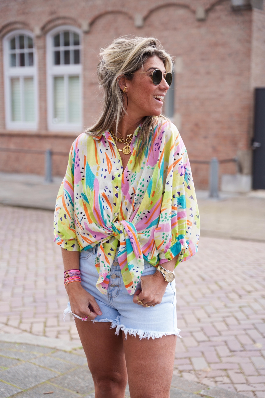 Blouse Thanne, een tijdloos ONESIZE favoriet! Gemaakt van 100% katoen, biedt deze luchtige blouse al jaren comfort en stijl in onze collectie. Dit jaar hebben we weer hem weer in gave kleuren, kortom een echte must-have in je garderobe.