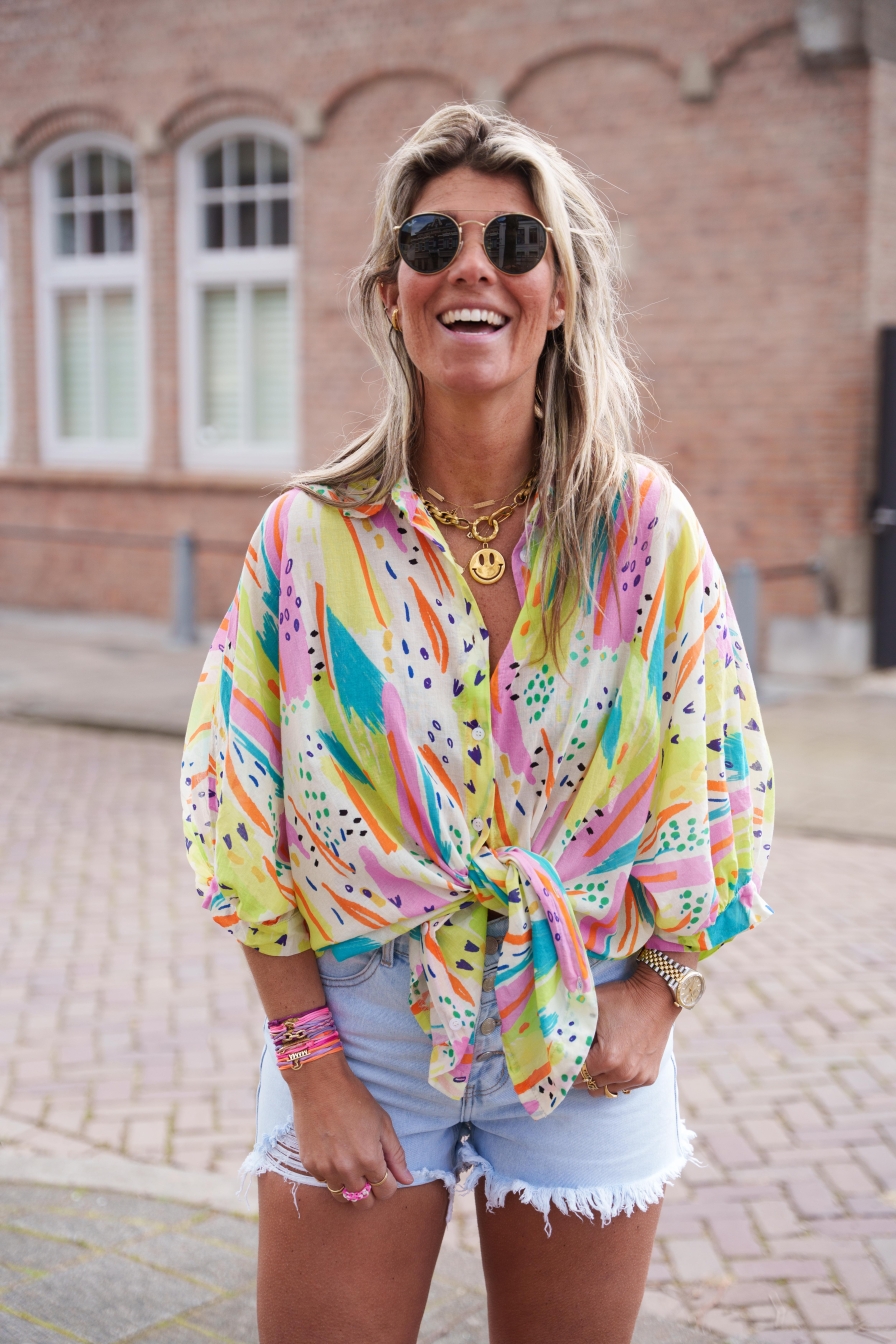Verzending met DHL !Blouse Geel-Roze Thanne