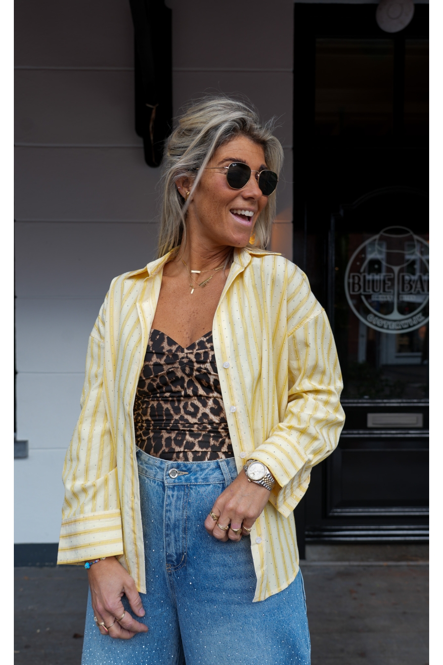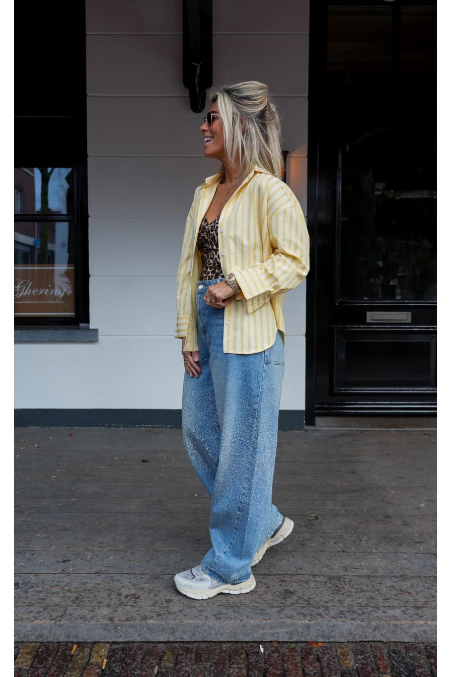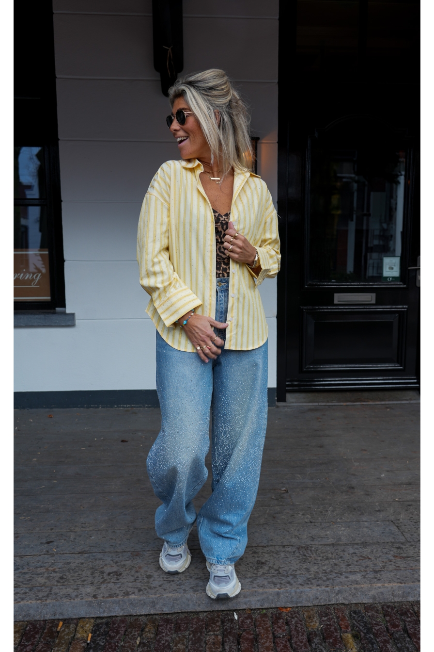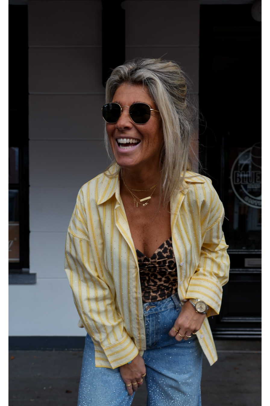 Geel en strass dat zijn mijn 2 pijlers voor dit seizoen. Hippe blouse waarvan ik maat M draag. (ik ben 1.76 lang)