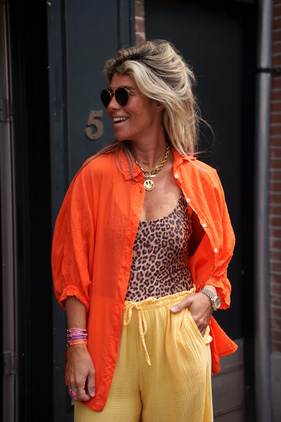 "Blouse Thanne, een tijdloos ONESIZE favoriet! Gemaakt van 100% katoen, biedt deze luchtige blouse al jaren comfort en stijl in onze collectie. Dit jaar hebben we weer hem weer in gave kleuren, kortom een echte must-have in je garderobe.