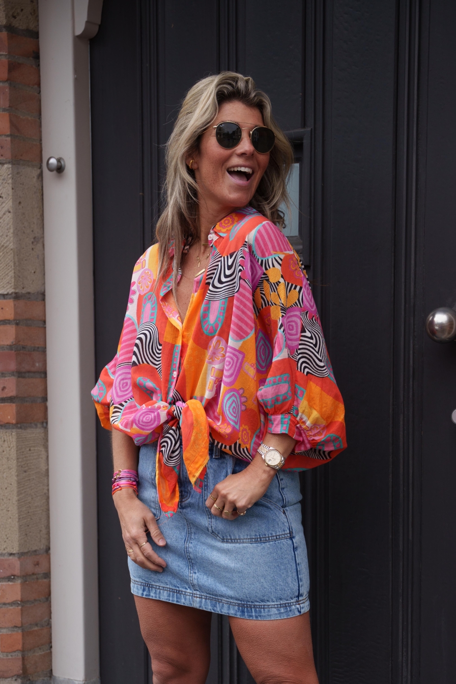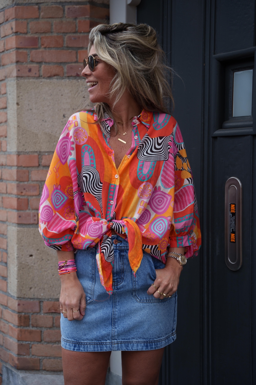 "Blouse Thanne, een tijdloos ONESIZE favoriet! Gemaakt van 100% katoen, biedt deze luchtige blouse al jaren comfort en stijl in onze collectie. Dit jaar hebben we weer hem weer in gave kleuren, kortom een echte must-have in je garderobe.