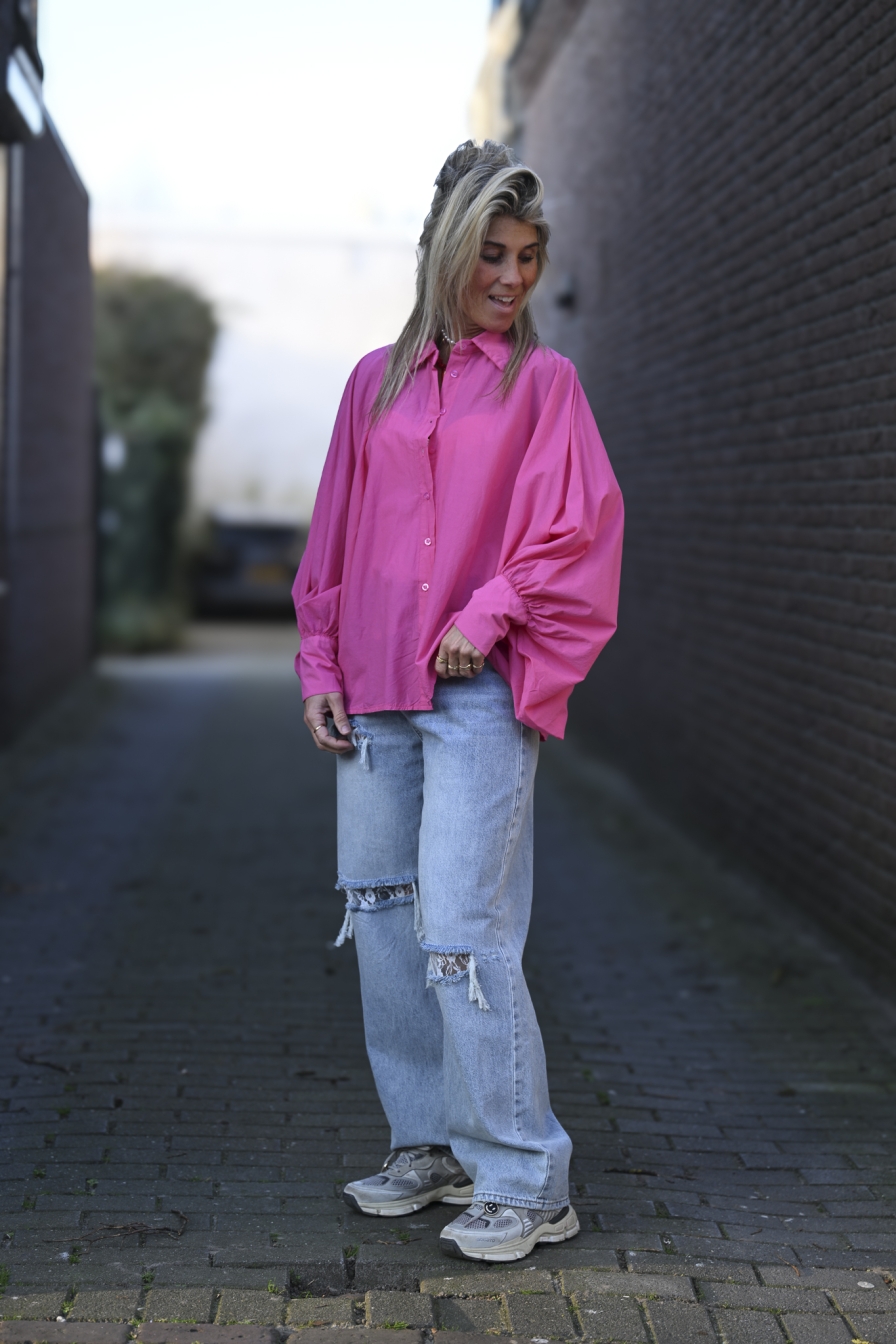 OMG, deze blouse heeft een trendy batwing model met heerlijke pofmouwen. De achterkant is iets langer dan de voorkant en valt mooi...