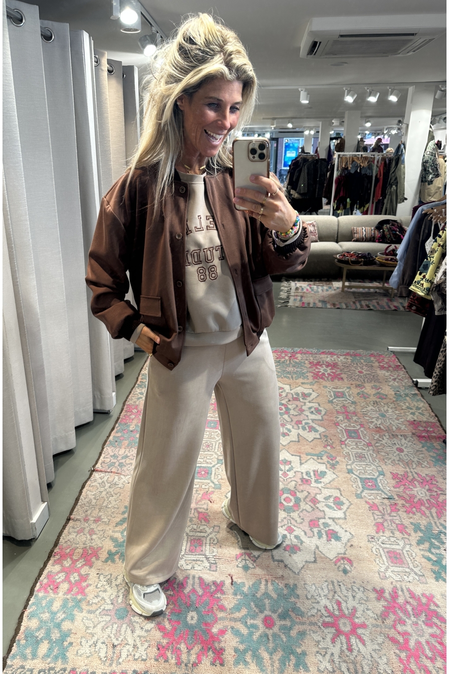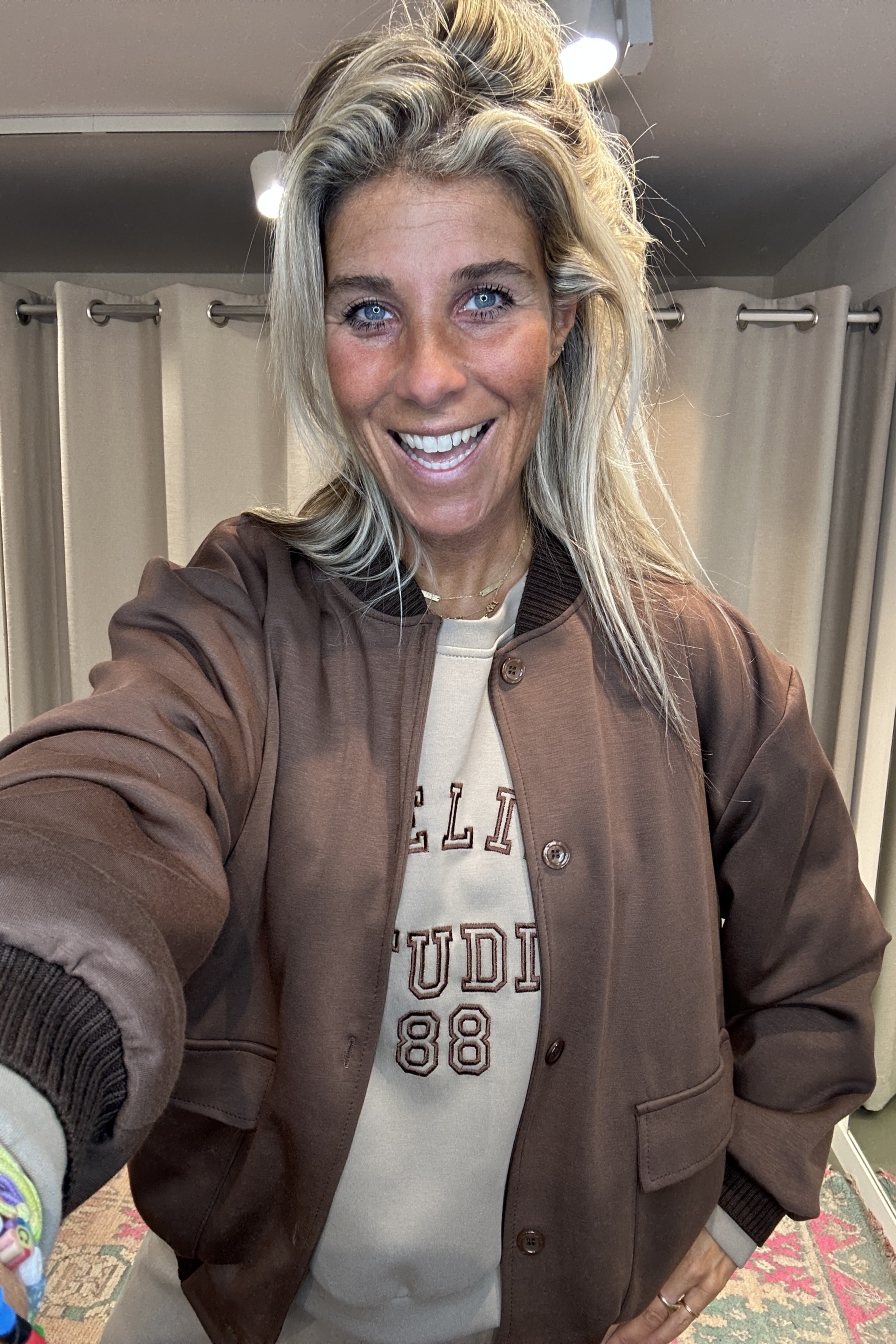 Bomber Bo – zacht & perfect voor dit seizoen! Dit heerlijke zachte tussenjack is een one-size model en draagbaar t/m maat L/XL. Het jack heeft aansluitende stiekband rond de polsen en taille, een kenmerkend detail dat dit typische bomber-model helemaal afmaakt.