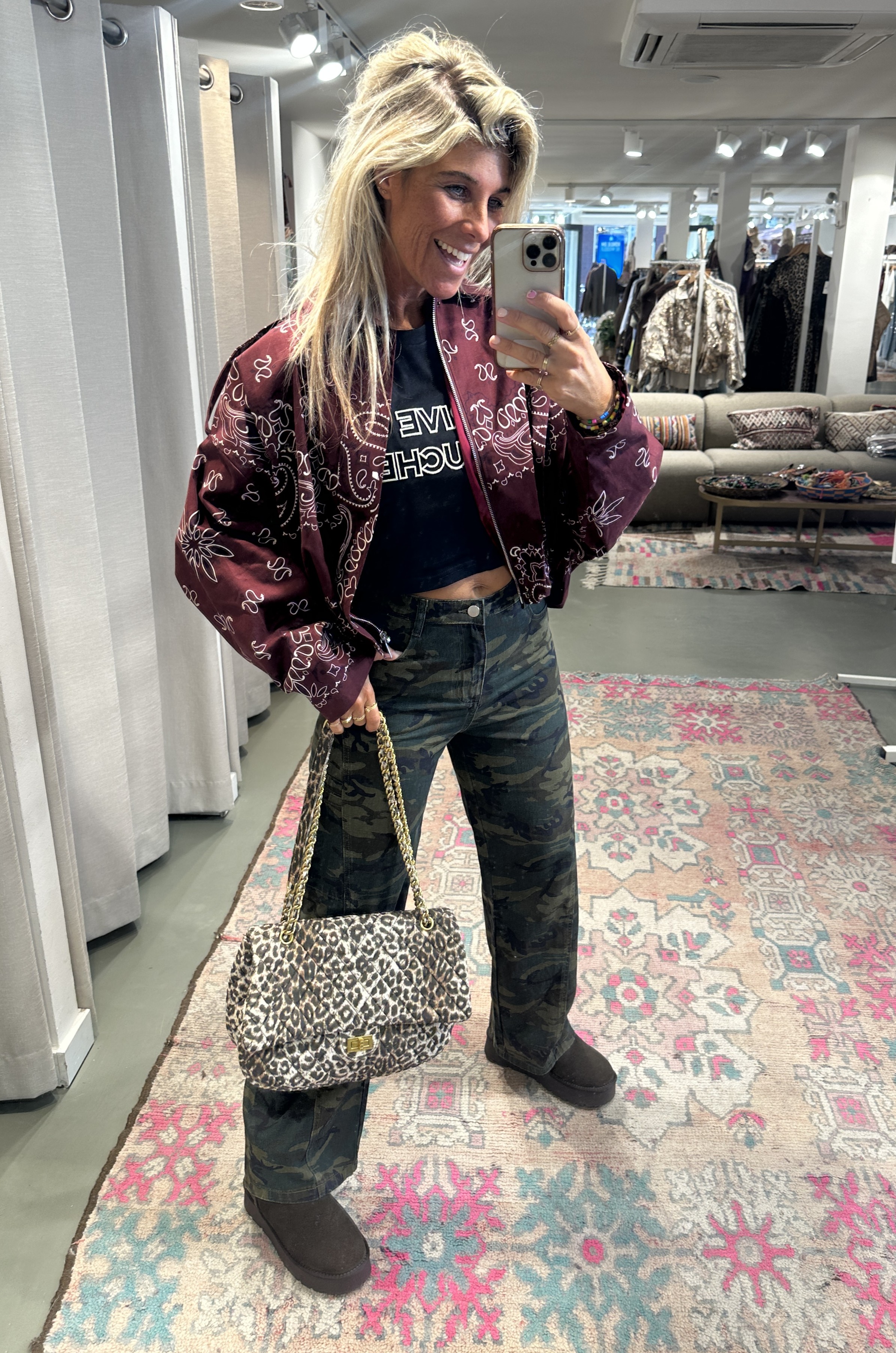 Dit bomberjack is een echte eyecatcher! Levertijd 3-5 dagen. Voorzien van een goede rits en een stevige elastische band rond de taille en bij de polsen — typisch voor een klassieke bomber model. De bandana-print geeft ‘m een gave look. Onesize model draag je tm maat L/XL.