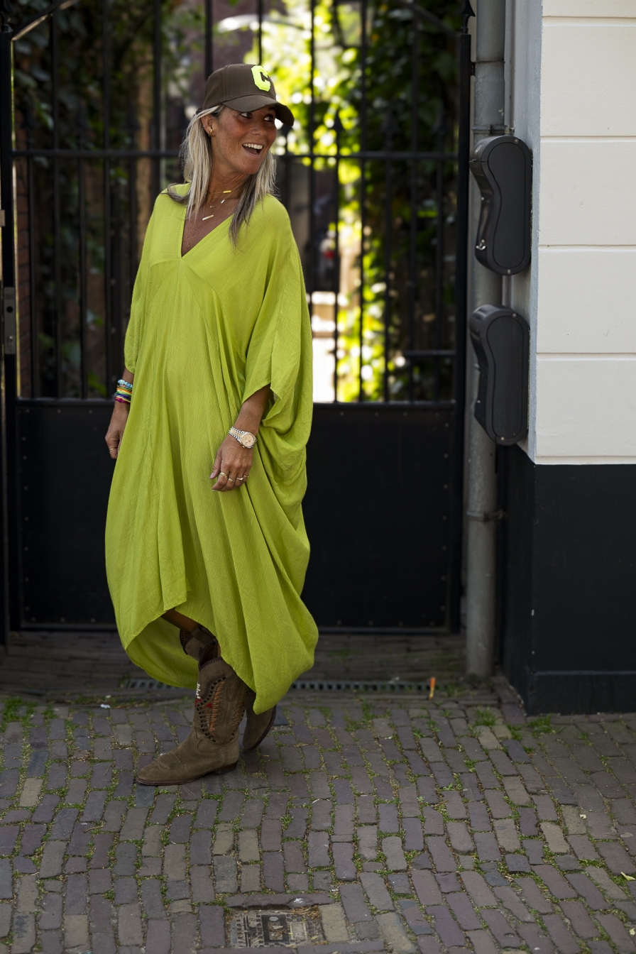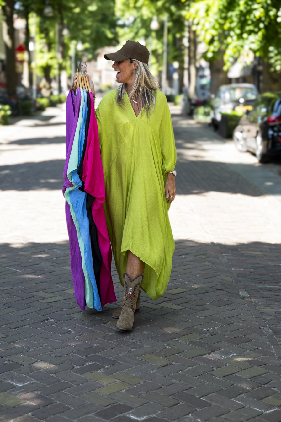 Butterfly Dress Romy brengt die ultieme Ibiza vibe! De zwierige vlindermouwen geven ‘m een speelse look, en de achterkant valt iets langer dan de voorkant voor dat extra boho-effect. Dit one-size model is lekker luchtig, heeft een fijne pasvorm en draag je moeiteloos tot en met maat L/XL. Perfect voor zonnige dagen, festivals of gewoon omdat je je fabulous wilt voelen!