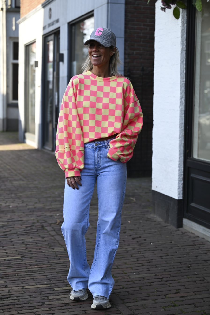 Verzending met DHL !Carre Sweater Geel - Roze