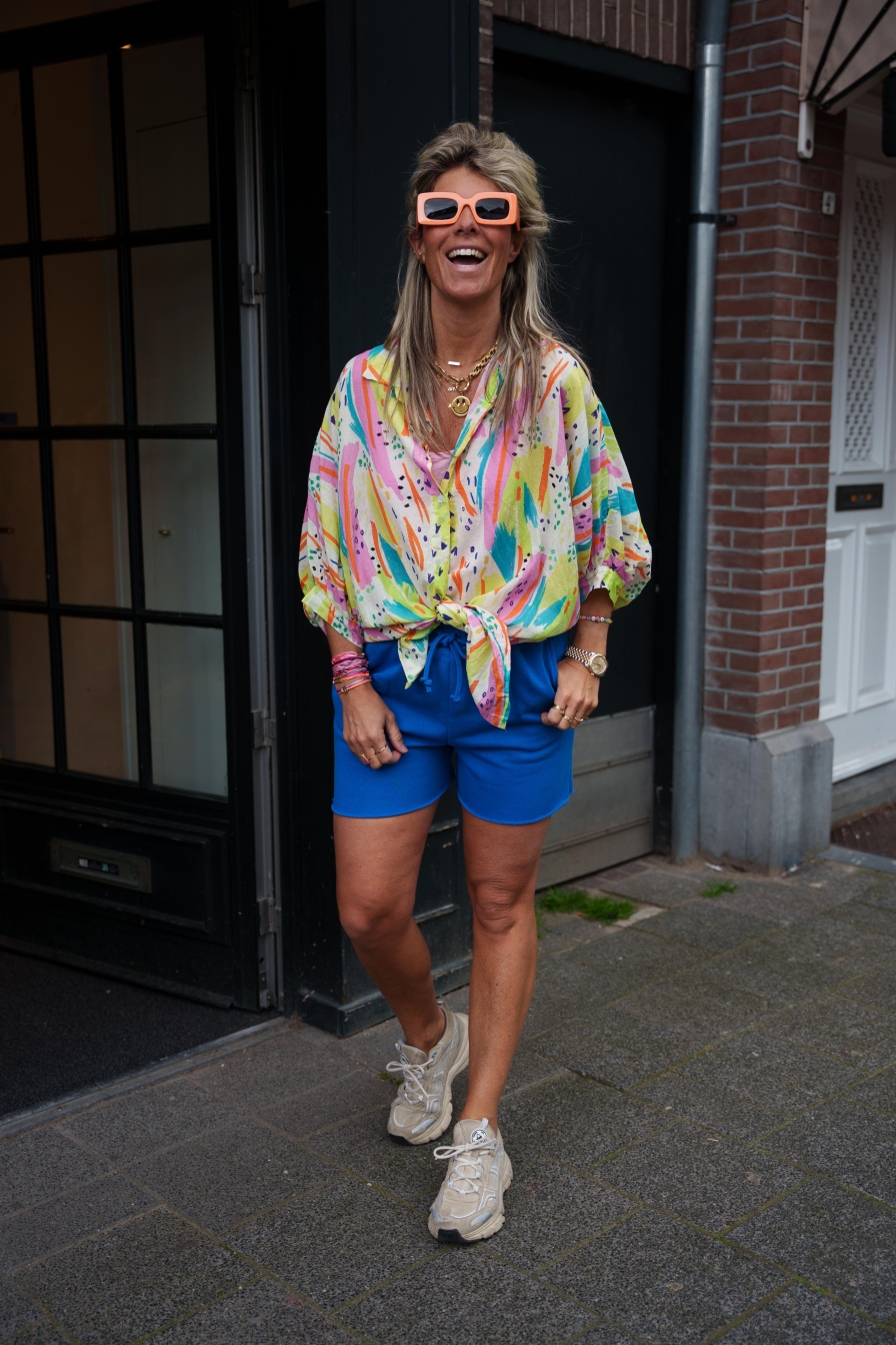 Combi set Xabi, gemaakt van 100% katoen,bestaat uit een oversized Onesize sweater met 3/4 mouw en een bijpassend joggingbroekje, verkrijgbaar in maat S/M of L/XL. Met mijn lengte van 1,76 m draag ik maat S/M.