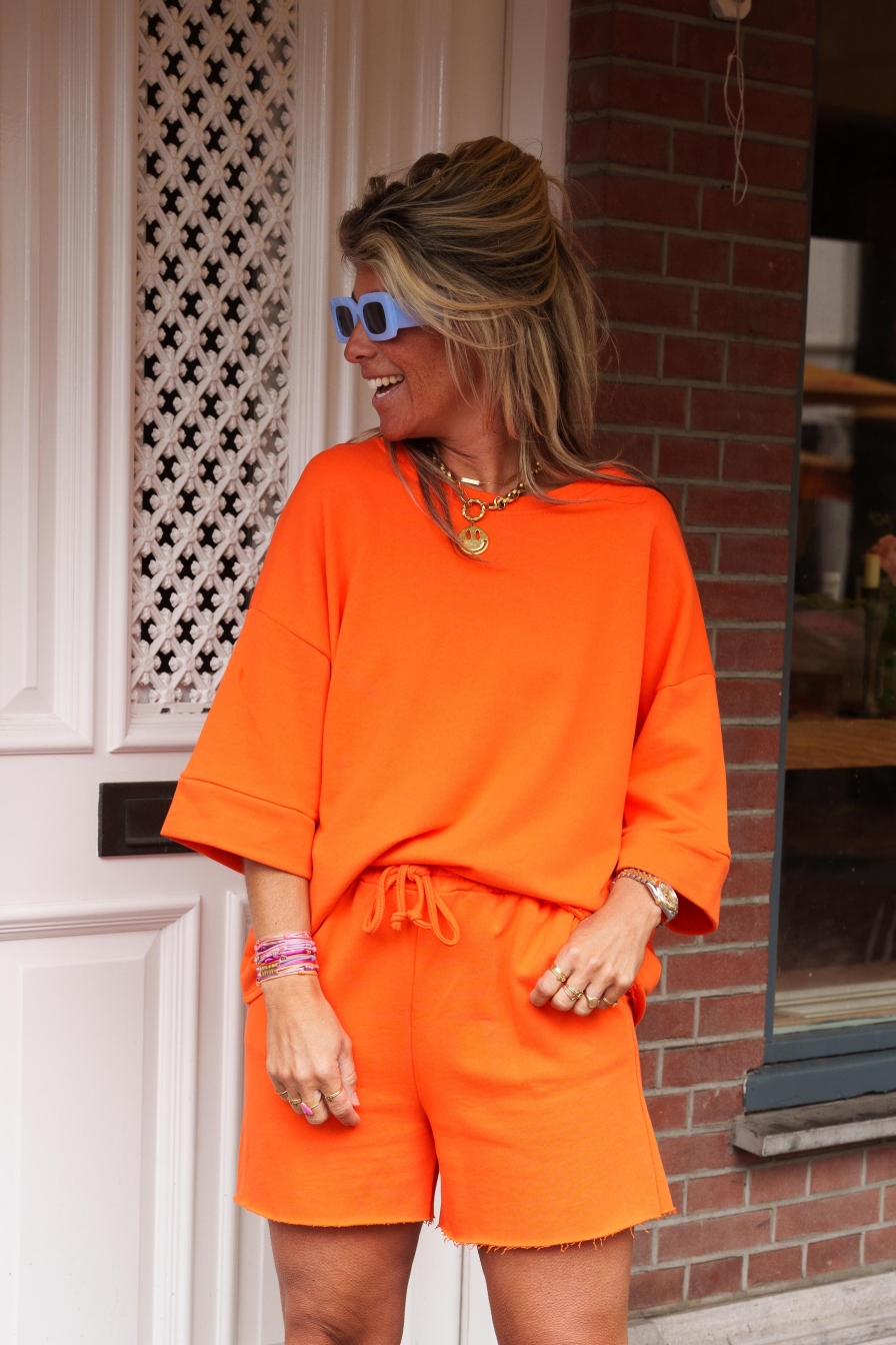 Combi set Xabi, gemaakt van 100% katoen,bestaat uit een oversized Onesize sweater met 3/4 mouw en een bijpassend joggingbroekje, verkrijgbaar...