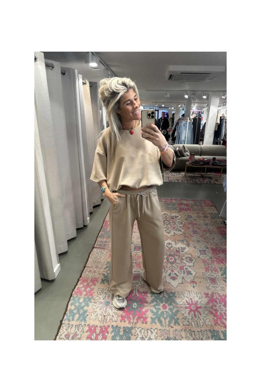 Heerlijk comfy pak bestaande uit een pantalon en bijpassende top. Het model valt lekker lang en de top heeft een stevige elastische...