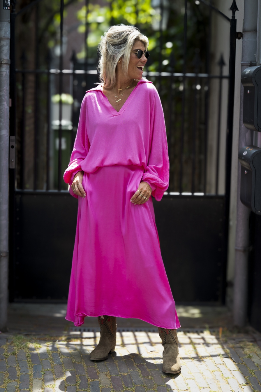 De rok is gemaakt van een zijdezachte mix van zijde en viscose, met relaxte steekzakken, een gladde boord voor én elastiek achter voor die perfecte fit.