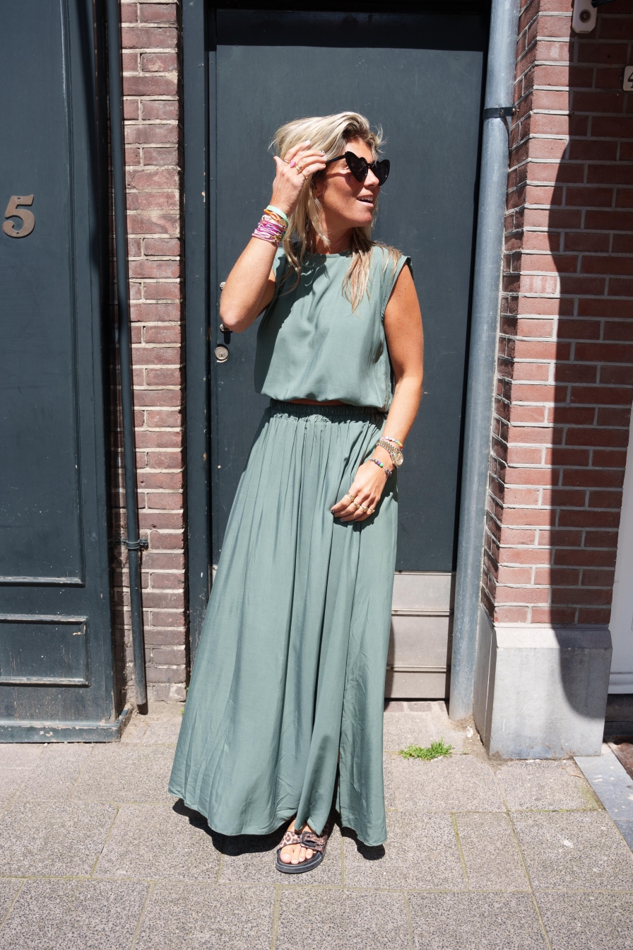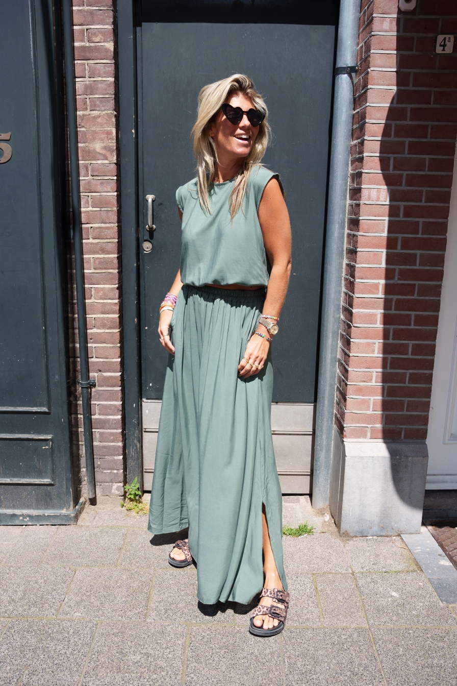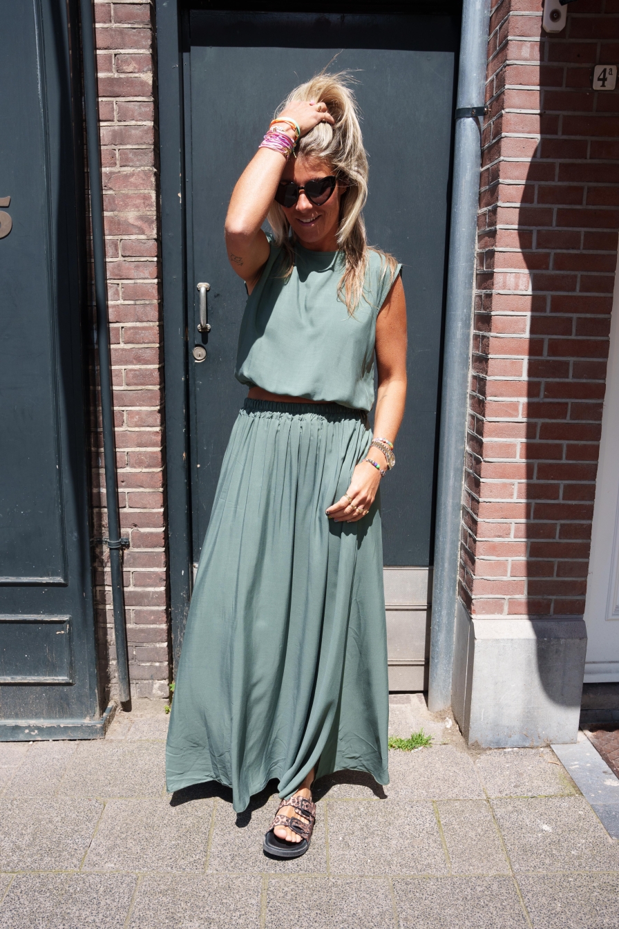 De combiset Juli bestaat uit een rok en een top, beide vervaardigd uit 100% viscose. Deze set combineert stijl en comfort moeiteloos. De rok heeft twee relaxte steekzakken en een stevige, hoge elastische tailleband, en past perfect tot en met maat XL/42. De Onesize top maakt de look compleet. Deze combinatieset zorgt voor een trendy, moeiteloze uitstraling!