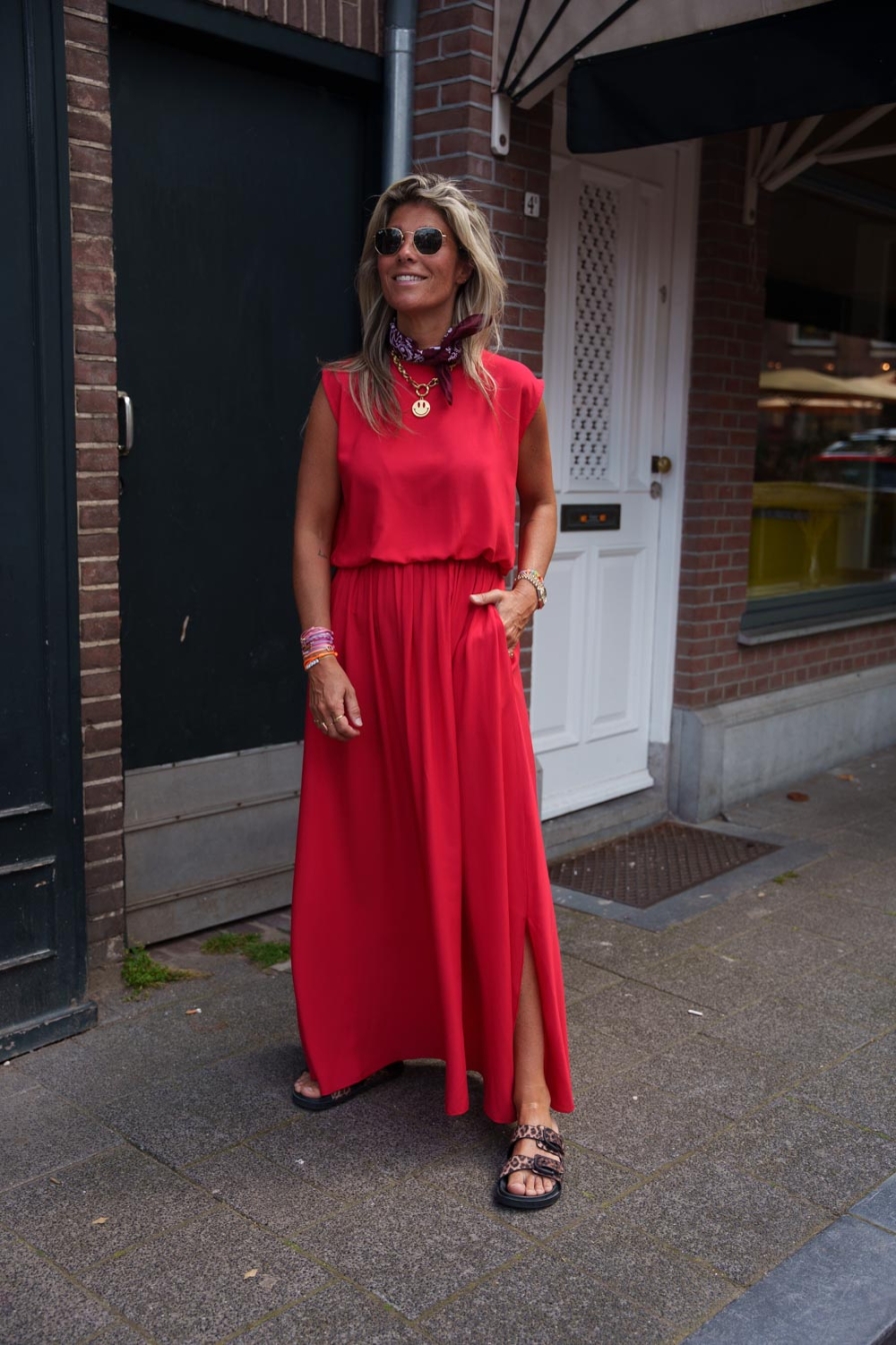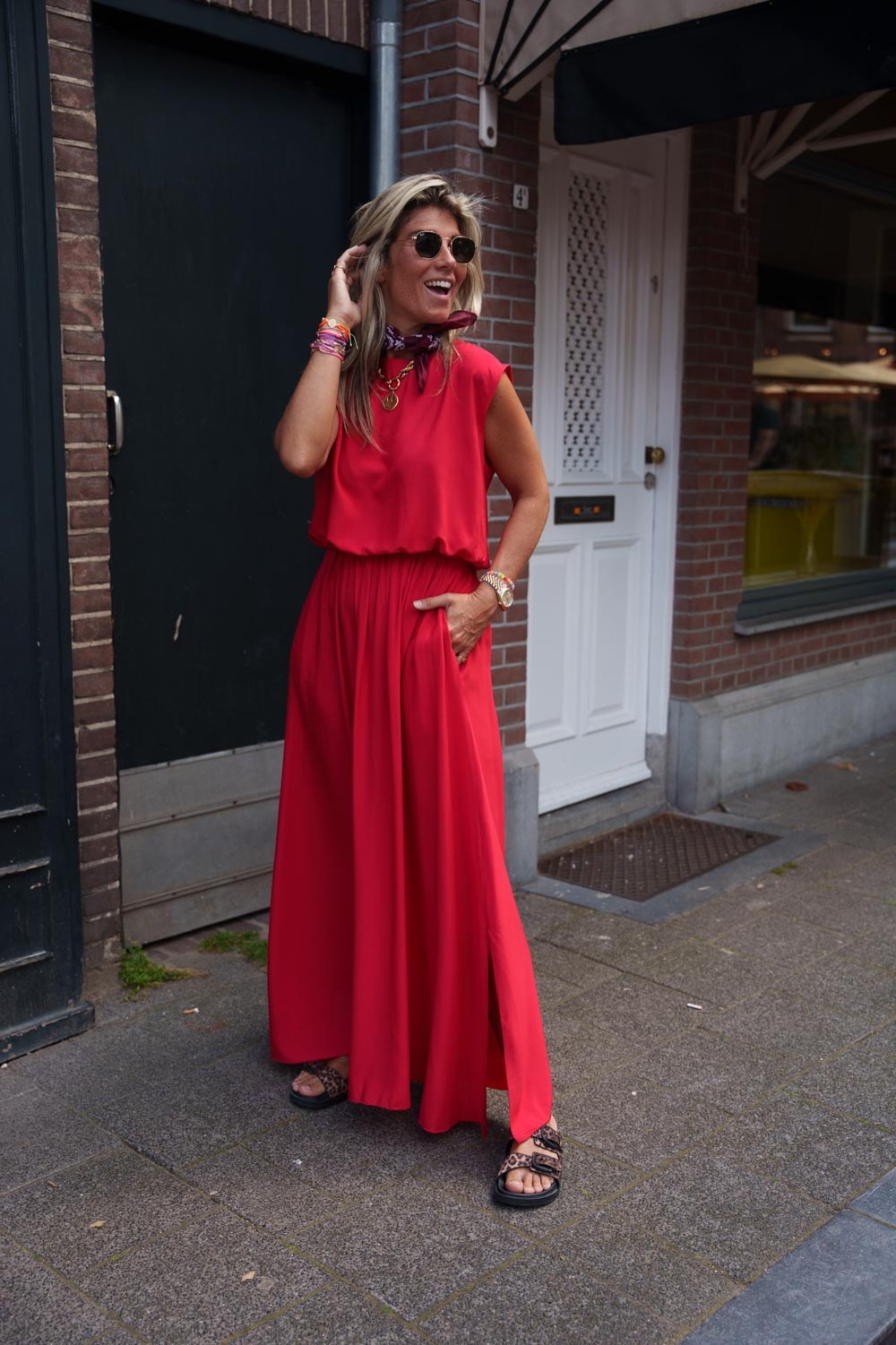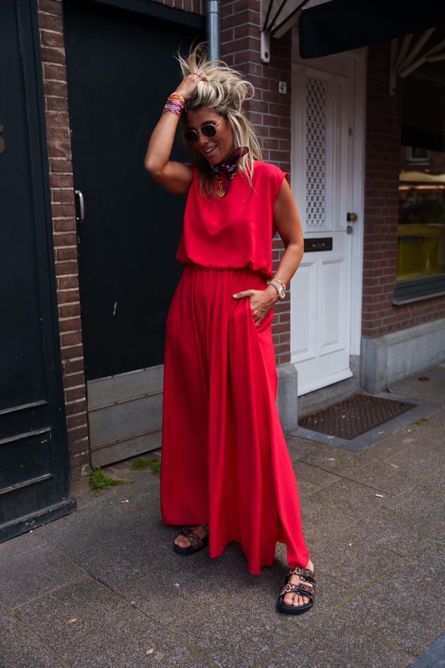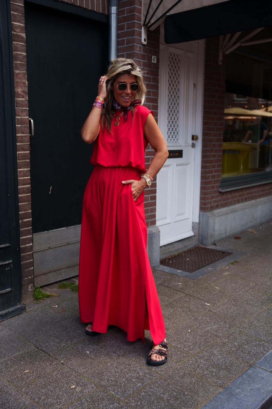 Deze stijlvolle combiset van 100% viscose bestaat uit een luchtige rok met steekzakken en een stevige high waist band én een bijpassende top met elastische onderkant en knoopje in de nek. Draag de rok hoog zodat deze overloop heeft op de top of laag, net waar jij zin in hebt – alles kan met deze set June! De Rok als de top past tm maat XL/42.