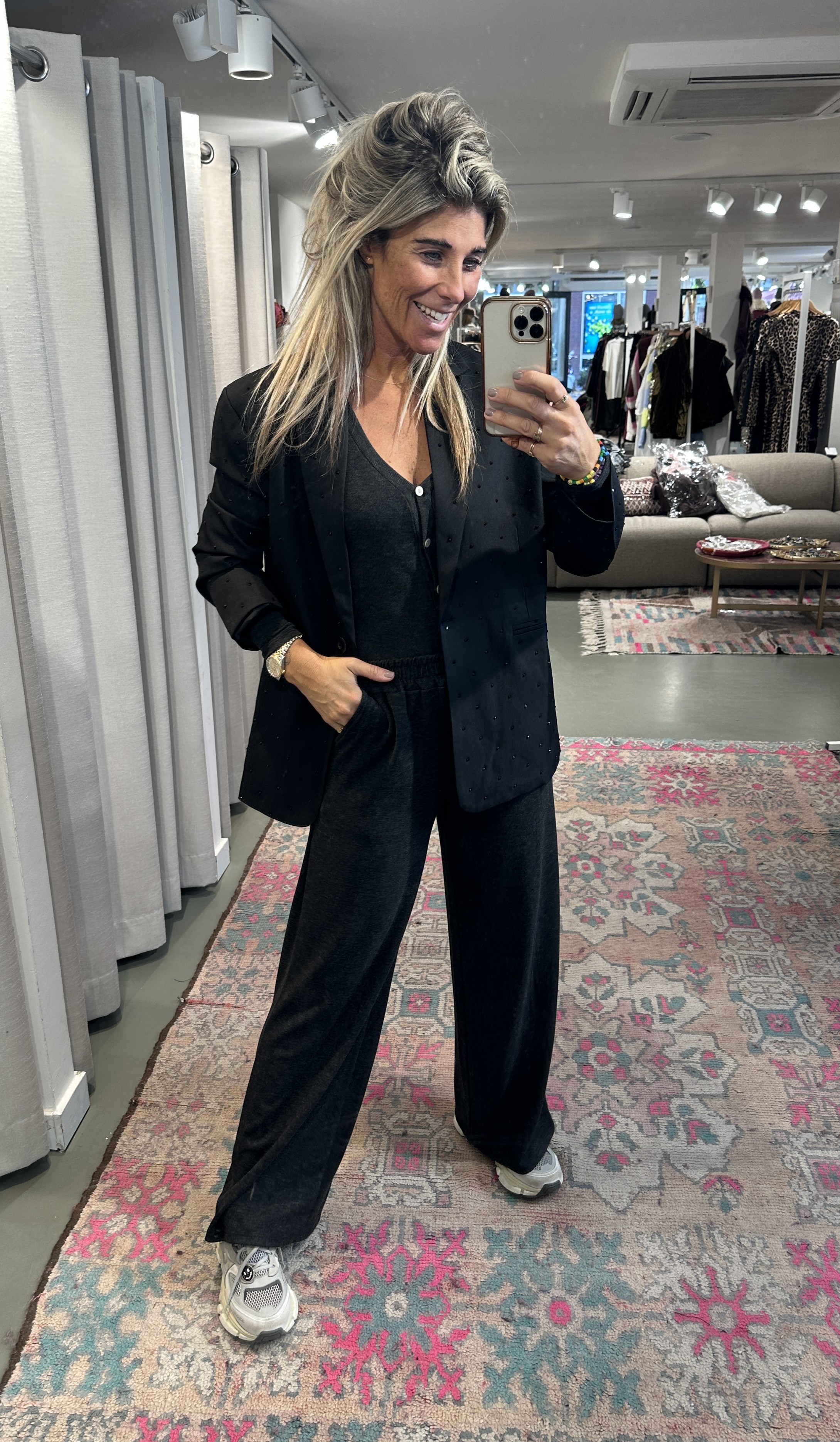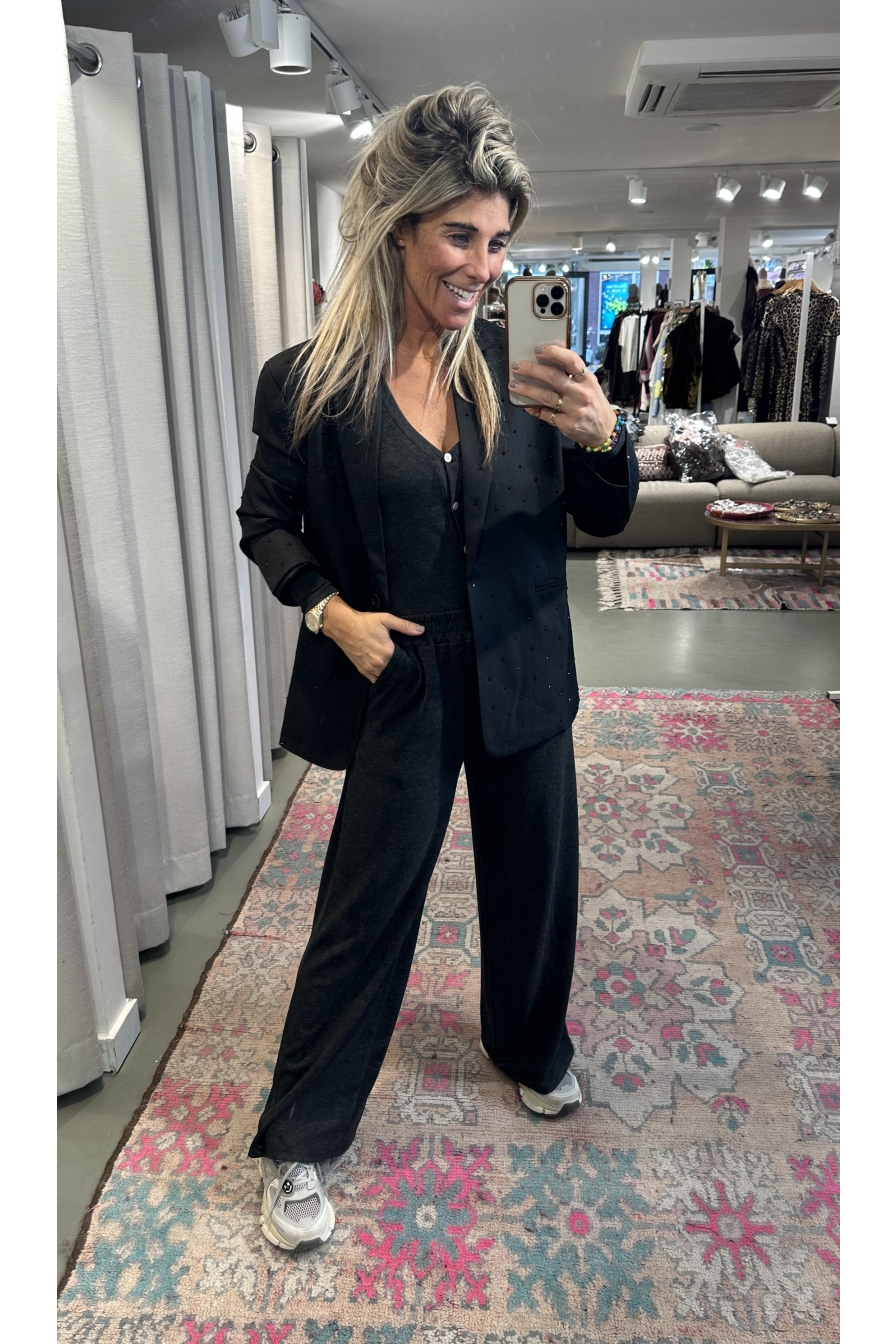 What can I say more! Dit heerlijke pak is gewoon THE BOMB! De wide-leg stretchy pantalon met steekzakken en stiekband zit als een droom....