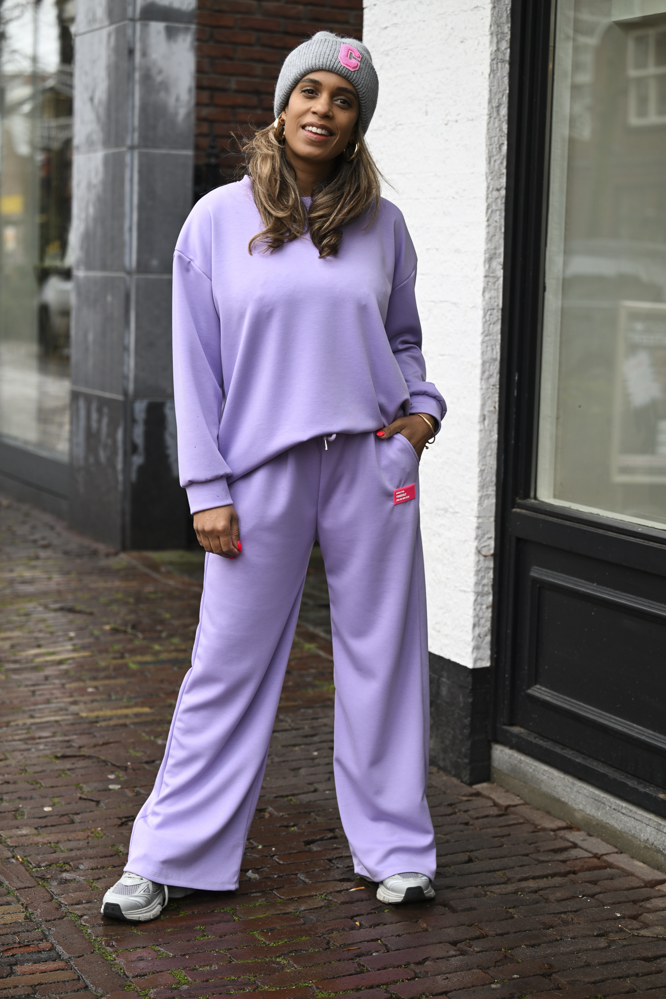 Combiset Suzy – dé knaller van januari! Straight leg broek met aantrekkoord en elastische taille, sweater met ronde hals en aansluitende...