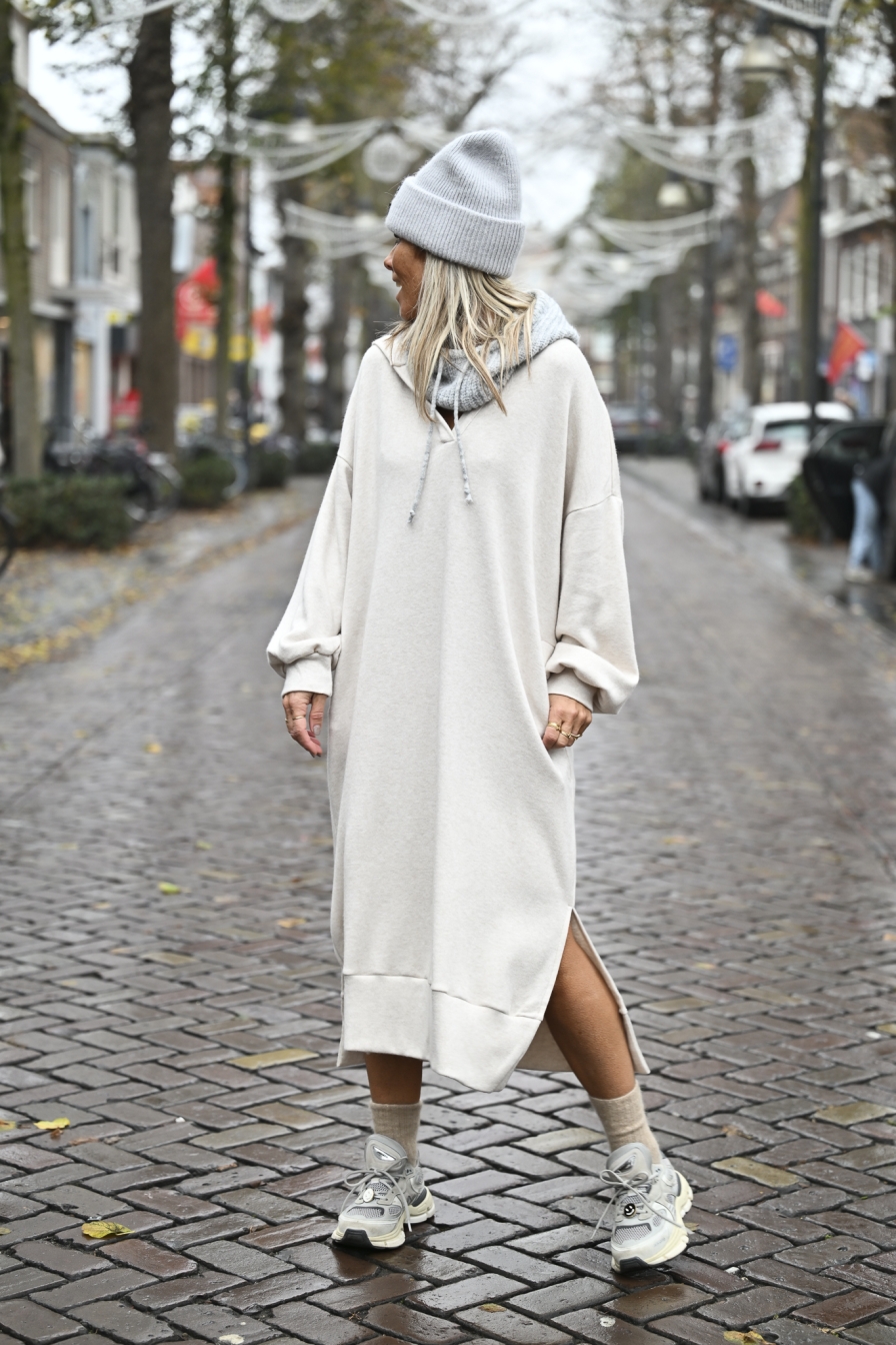 Gamechanger alert! Deze CozyHoodress heeft alles: hoody, splitjes aan de zijkant, steekzakken en een comfy fit. Onesize, draagbaar van maat 38/M t/m 44/XXL – echt my new favourite!