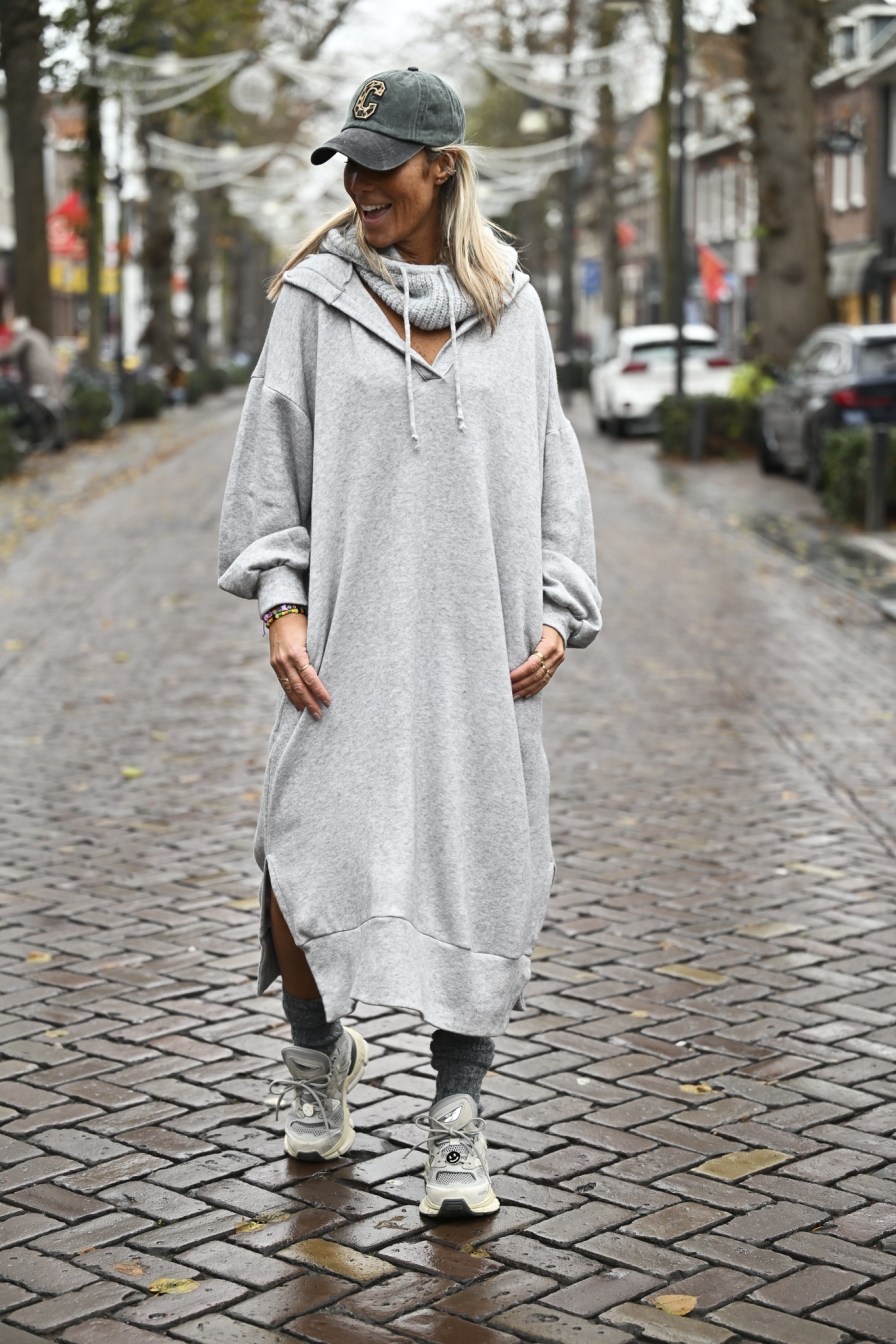 Gamechanger alert! Deze CozyHoodress heeft alles: hoody, splitjes aan de zijkant, steekzakken en een comfy fit. Onesize, draagbaar van maat 38/M t/m 44/XXL – echt my new favourite!