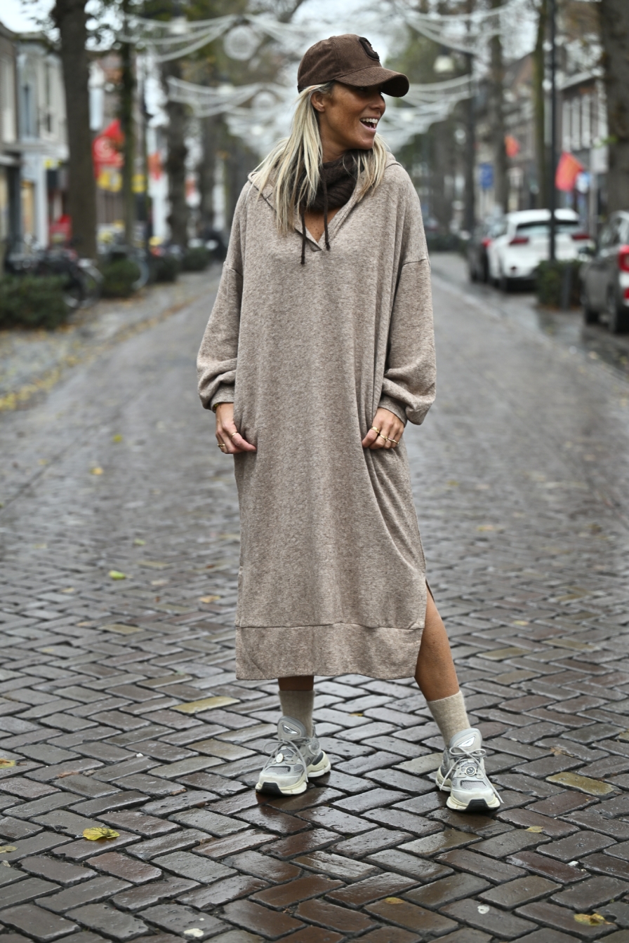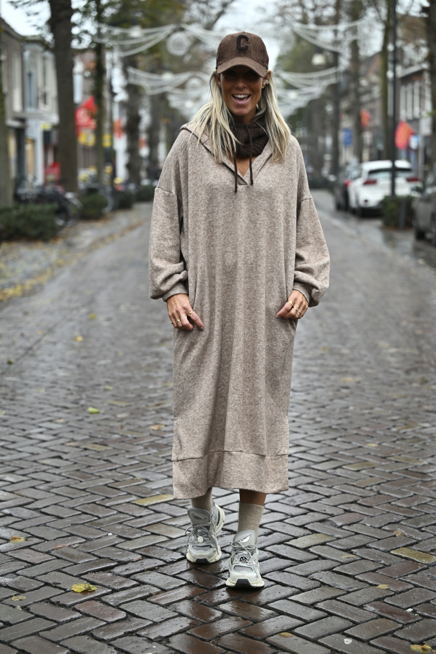 Gamechanger alert! Deze CozyHoodress heeft alles: hoody, splitjes aan de zijkant, steekzakken en een comfy fit. Onesize, draagbaar van maat 38/M t/m 44/XXL – echt my new favourite!