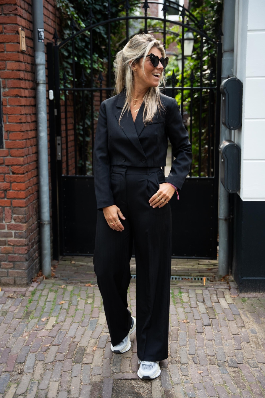 Deze musthave Crop Blazer kun je eindeloos combineren met de pantalons uit de zelfde serie. Maar vergeet hem vooral niet te combineren met een toffe jeans. De Crop Blazer valt goed op maat , ik draag maat M en ben 1.76 lang.