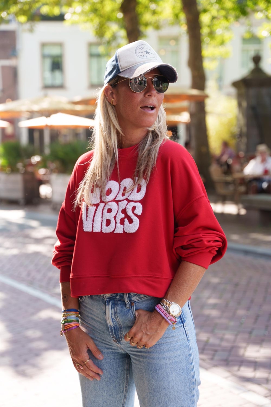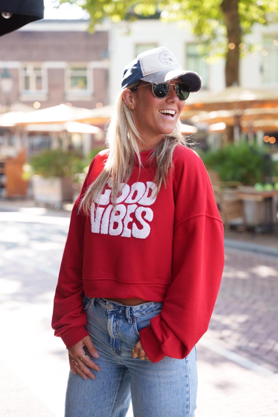 Verzending met DHL !Crop Sweater Vibes Red