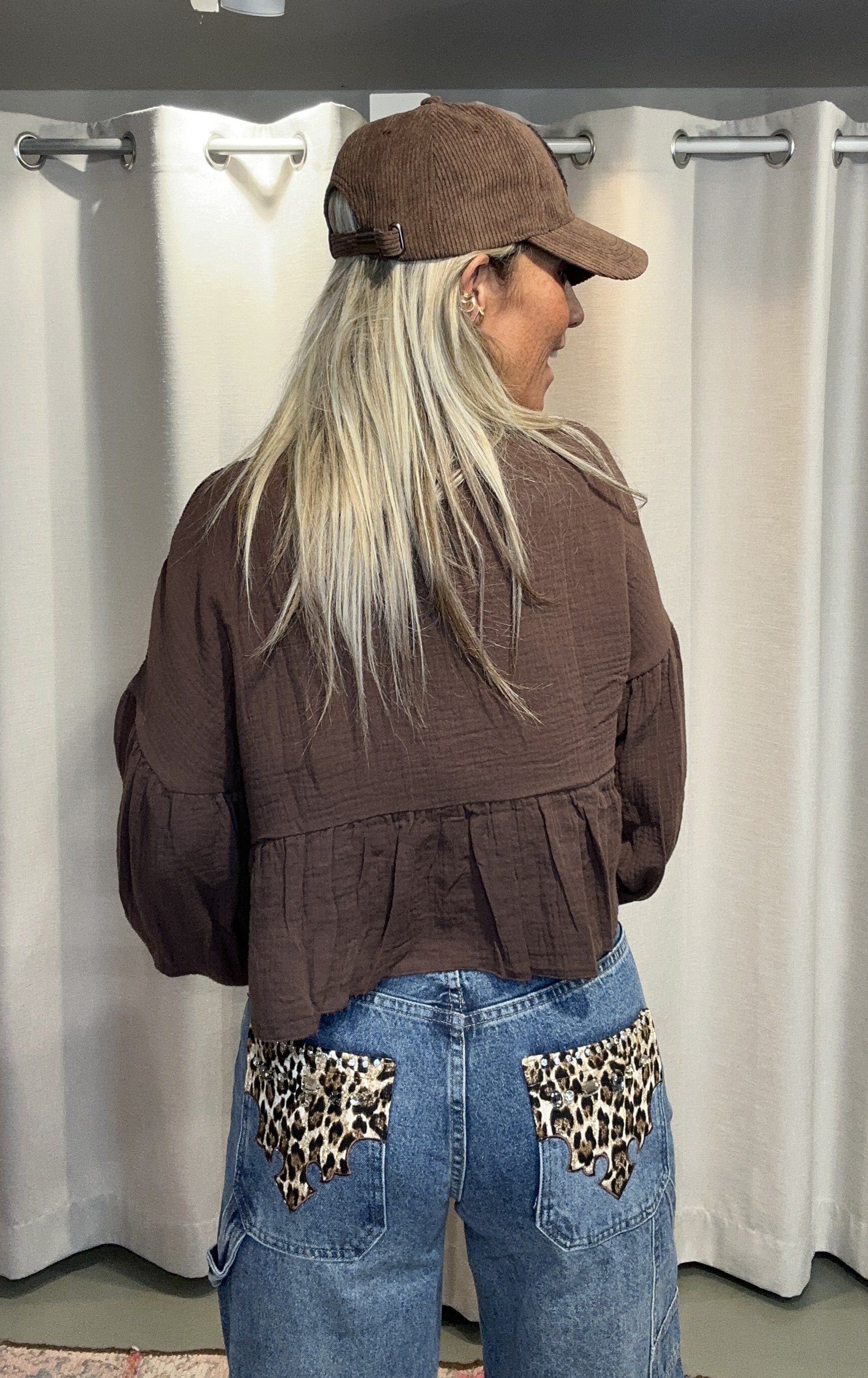 Nog 2 op voorraadVerzending met DHL !Cropped Blouse Choco