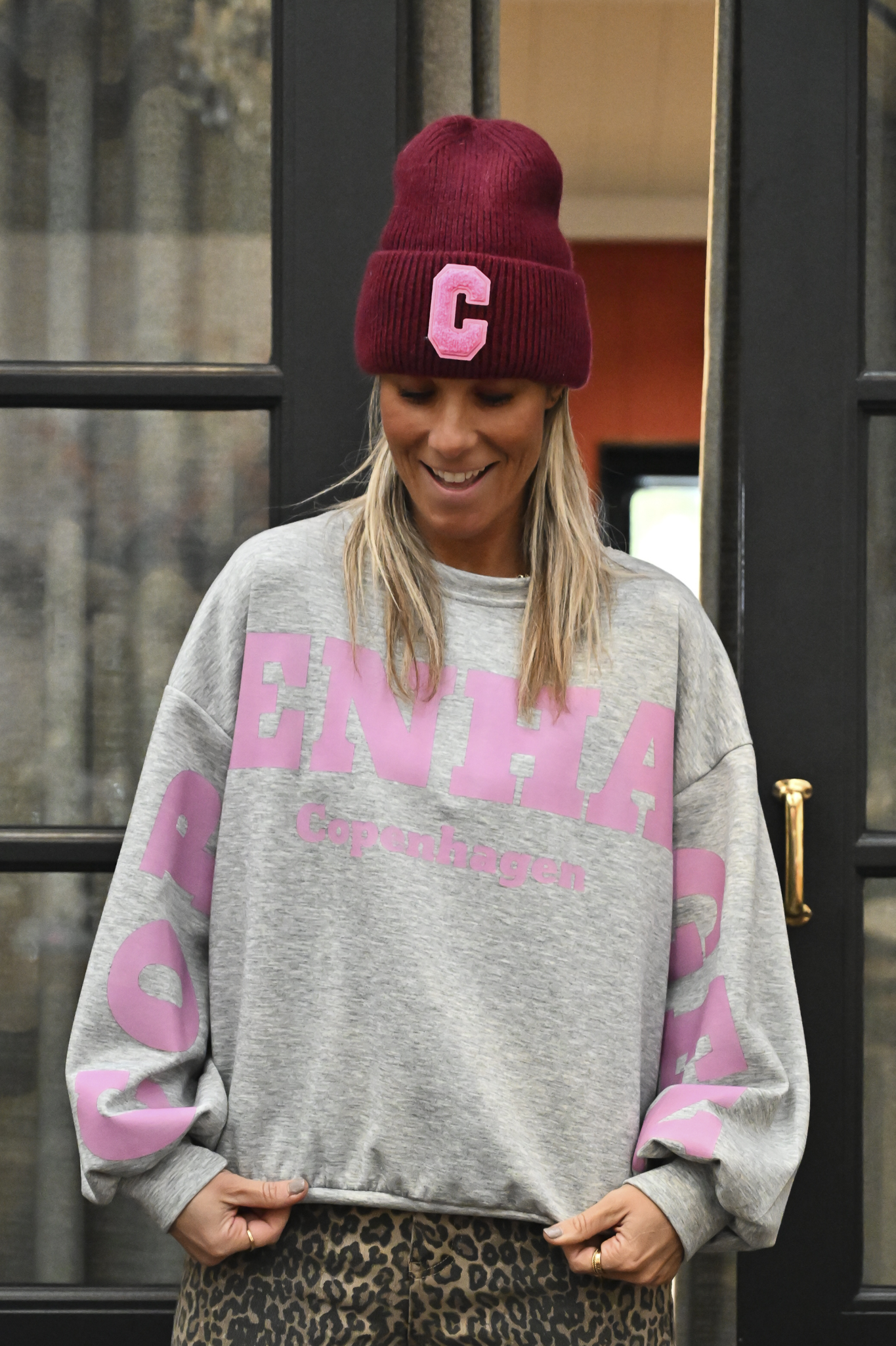 Deze sweater valt op door de in boog doorlopende plaatsnaam Copenhagen. Op de ene mouw staat COP, op de borst ENHA en op de andere mouw GEN, allemaal gedrukt in roze letters. De sweater is gemaakt van een comfortabele mix van polyester en viscose, met 5% elastane voor extra stretch. De pasvorm is onesize en draagbaar t/m maat L–XL.