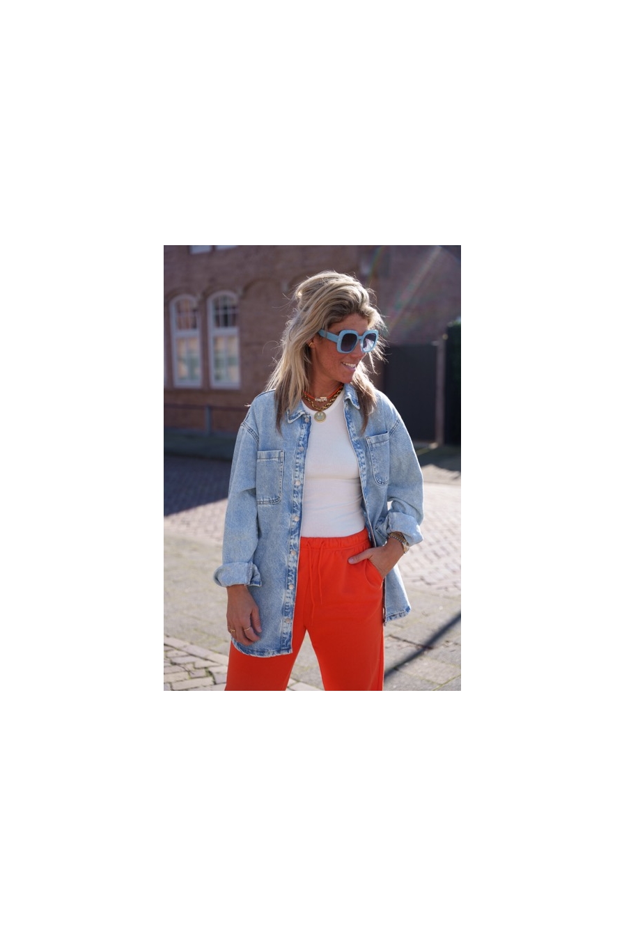 Rock de straten in deze lichtblauwe denim blouse met een stoere twist! Voorzien van twee borstzakken voor die extra urban vibe. Gemaakt van 100% katoen voor ultiem comfort en duurzaamheid. Een must-have voor je casual en trendy look! Met mijn 1.76 draag ik een maat M.
