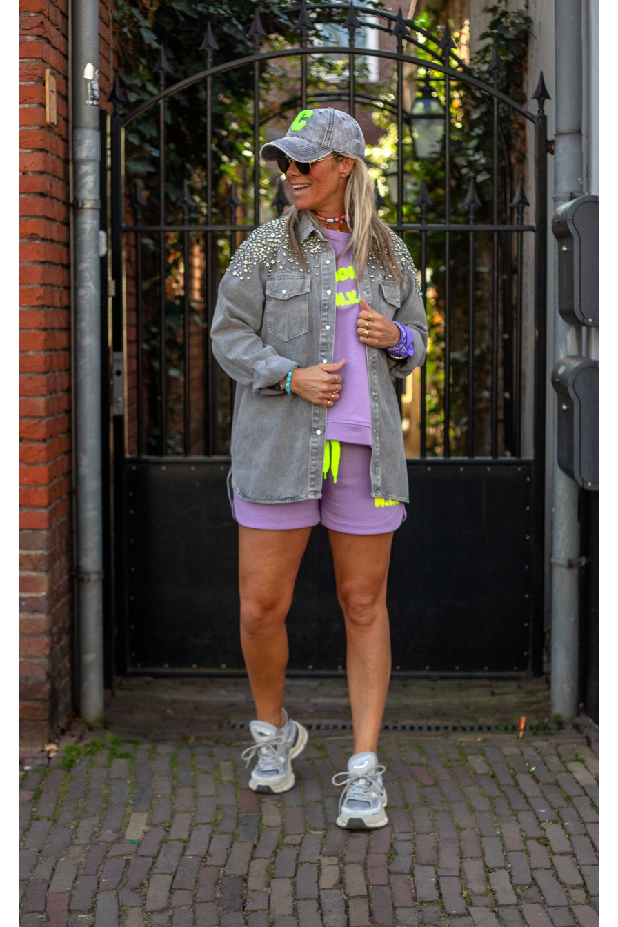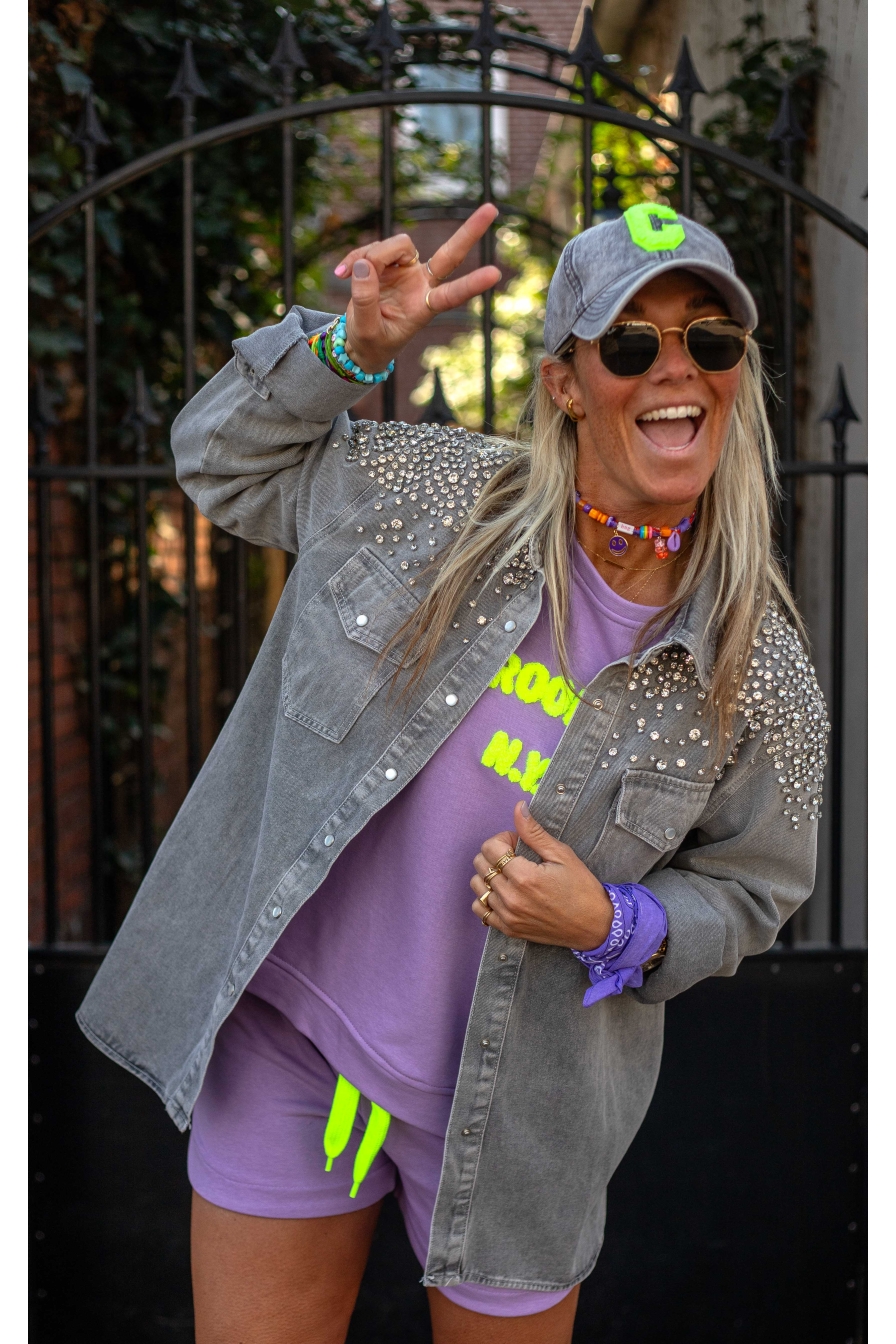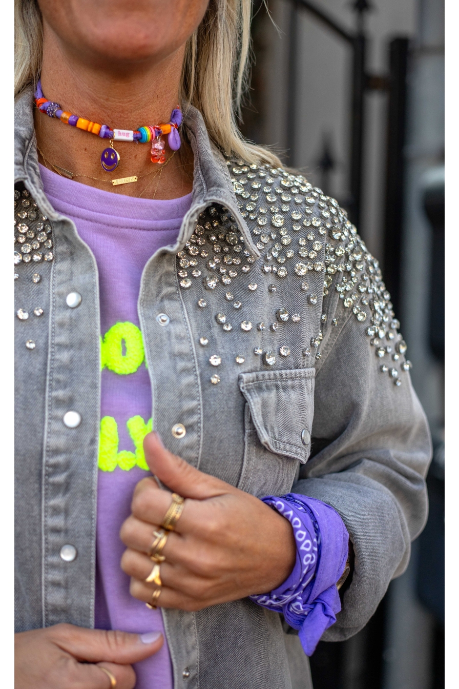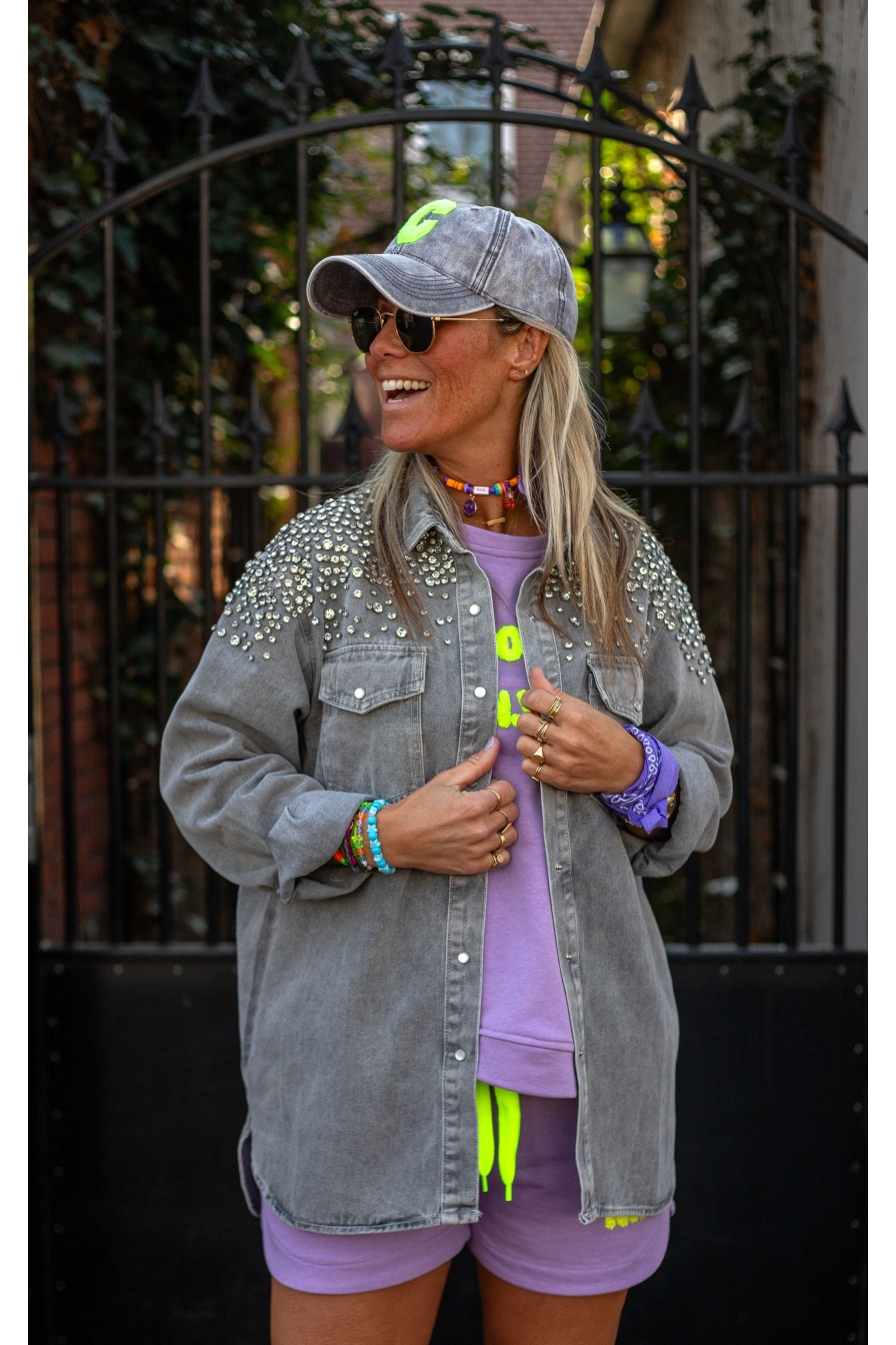 Deze Loose-Fit Denim Blouse (ik draag maat S/M en ben 1.76M) tilt je look naar een hoger niveau! De schouders en borst zijn versierd met stevig bevestigde sparkles voor een stijlvolle touch. Met 7 stevige drukknopen, 2 borstzakken en een iets langere achterkant die mooi over de billen valt.