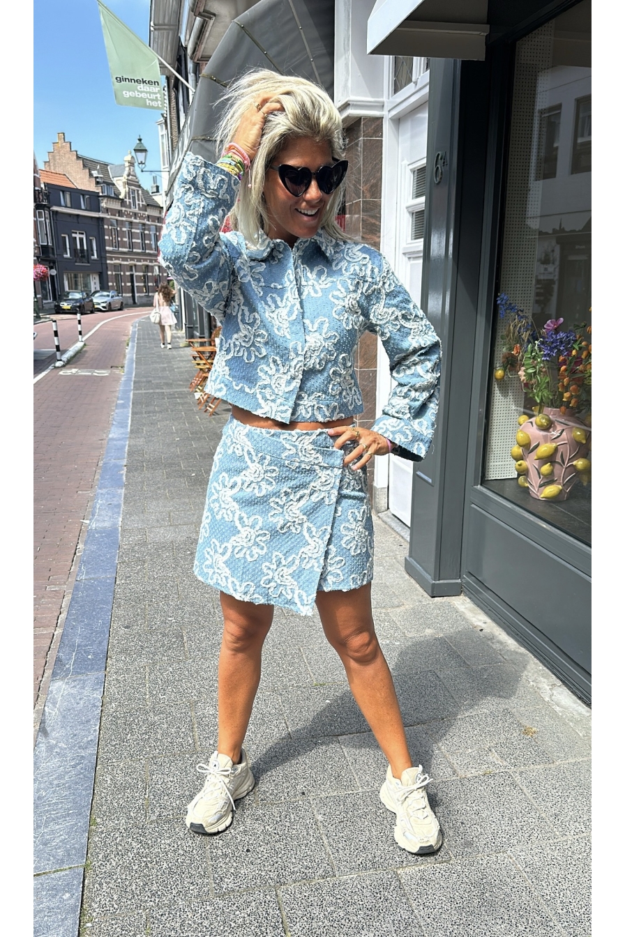 Denim Skirt Luca is de ultieme must-have voor een killer look! Deze rok van 85% katoen en 15% polyester heeft een toffe overslag aan...