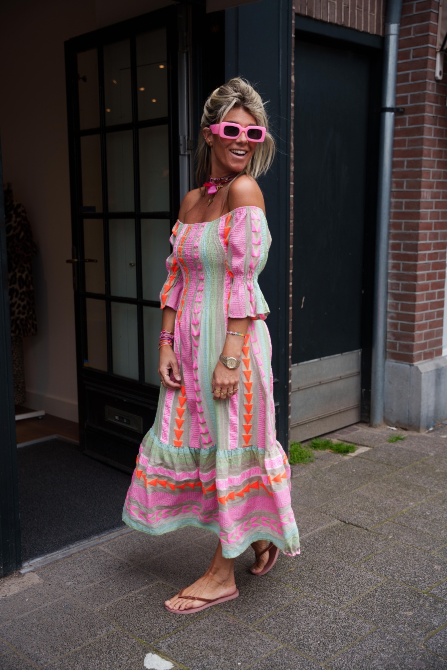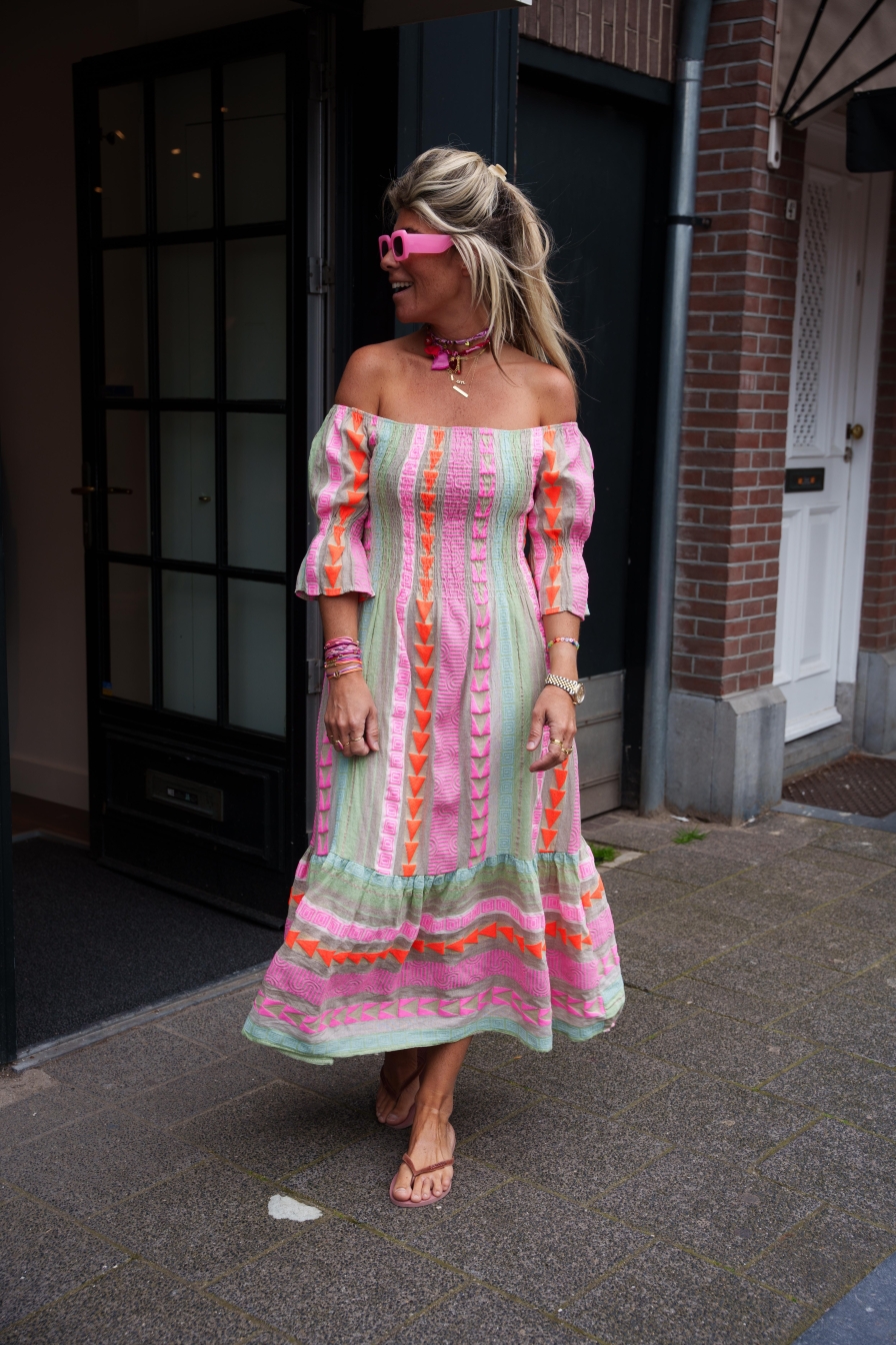 Ontdek de ultieme zomervibe met de Dress Boho Aztec Maxi! Gemaakt van 62% katoen, biedt deze jurk niet alleen comfort maar ook een...