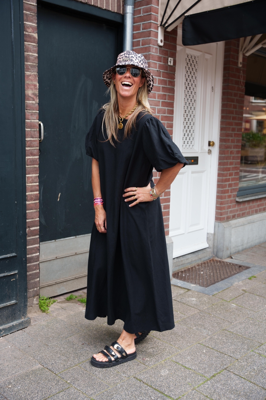 Dress Capri Zwart is dé must-have voor elke gelegenheid! Gemaakt van een luxe mix van viscose, linnen en katoen, biedt deze jurk niet alleen comfort maar ook stijl. Met grote pofmouwen voor een vleug Flair! Met mijn 1.76 draag ik maat S.