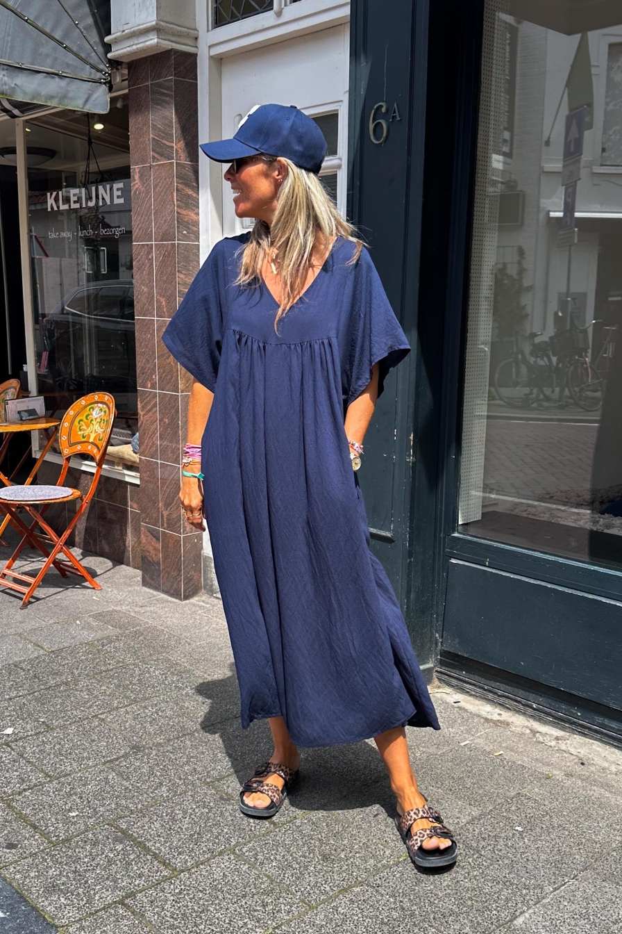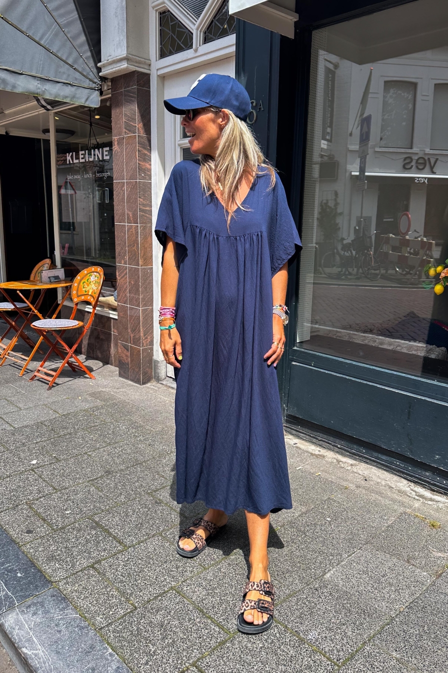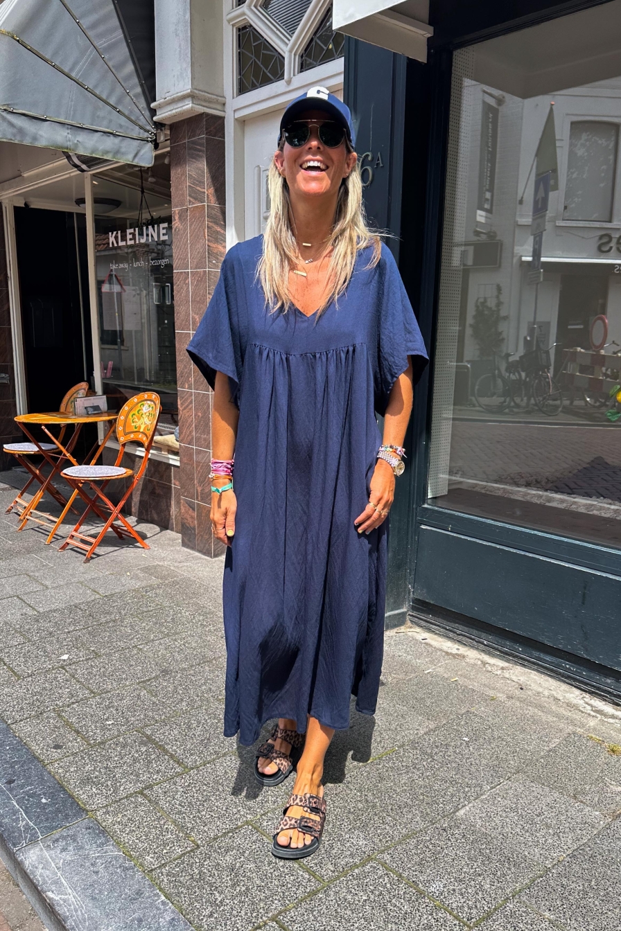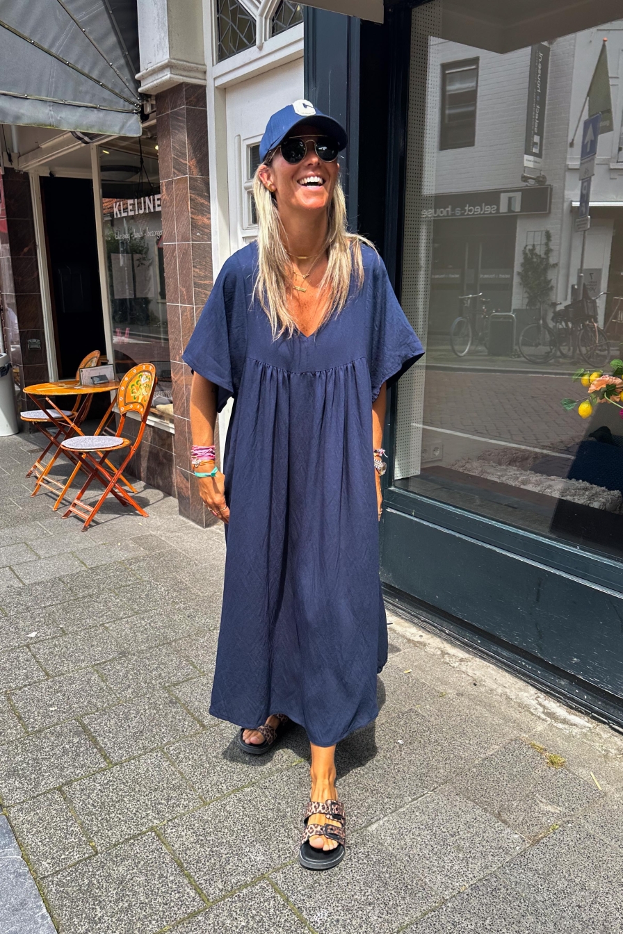 Dress Celeste met steekzakken is gemaakt van 100% viscose, wat zorgt voor een heerlijke luchtigheid. Dit Onesize model valt ruim en is geschikt voor maten tot en met 44.