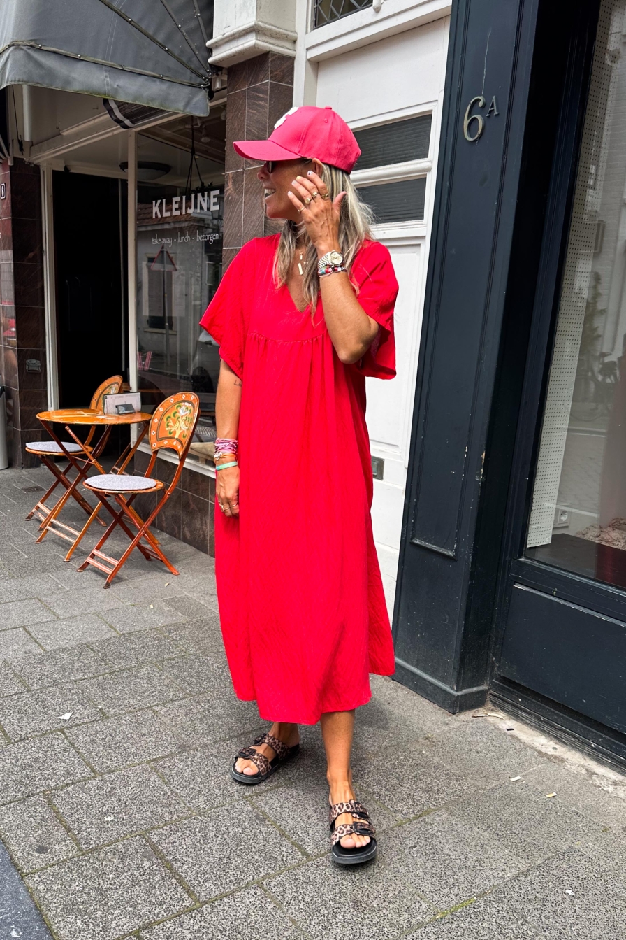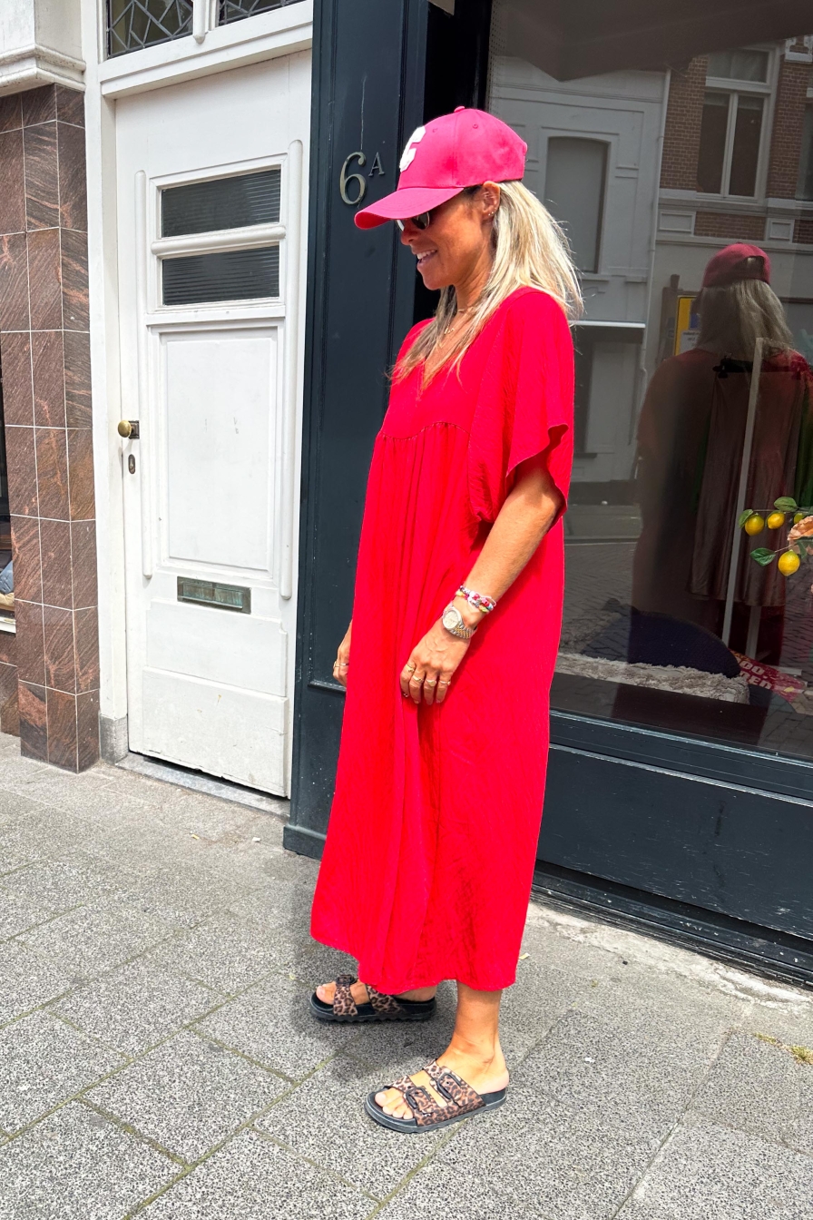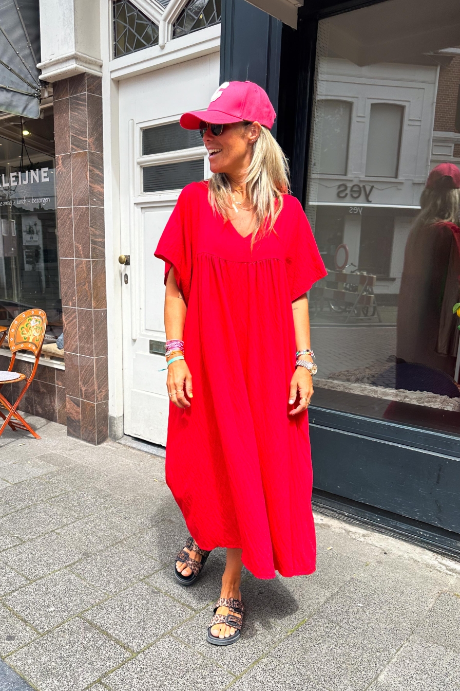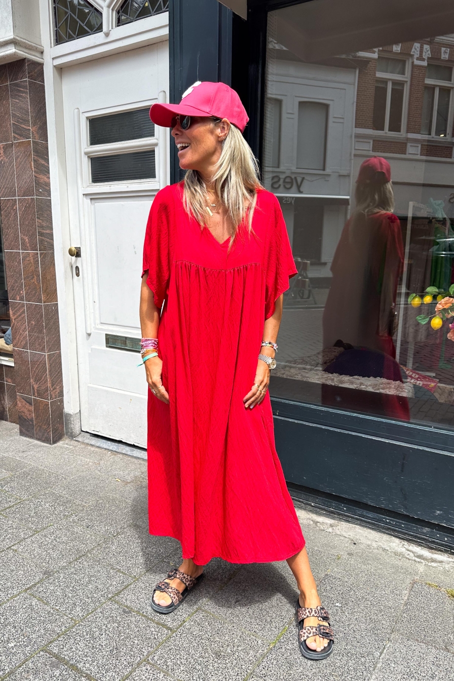 Dress Celeste met steekzakken is gemaakt van 100% viscose, wat zorgt voor een heerlijke luchtigheid. Dit Onesize model valt ruim en is geschikt voor maten tot en met 44.