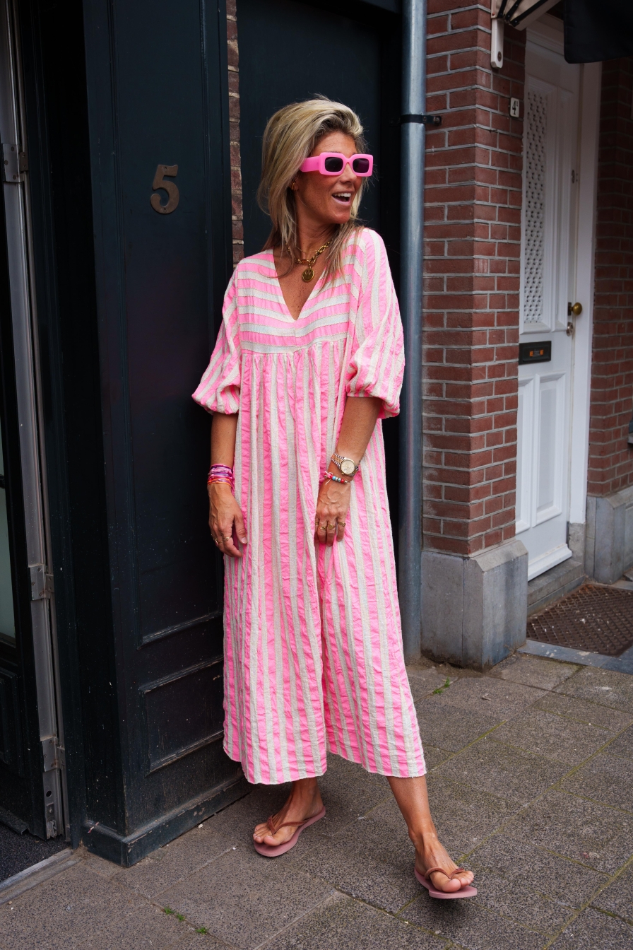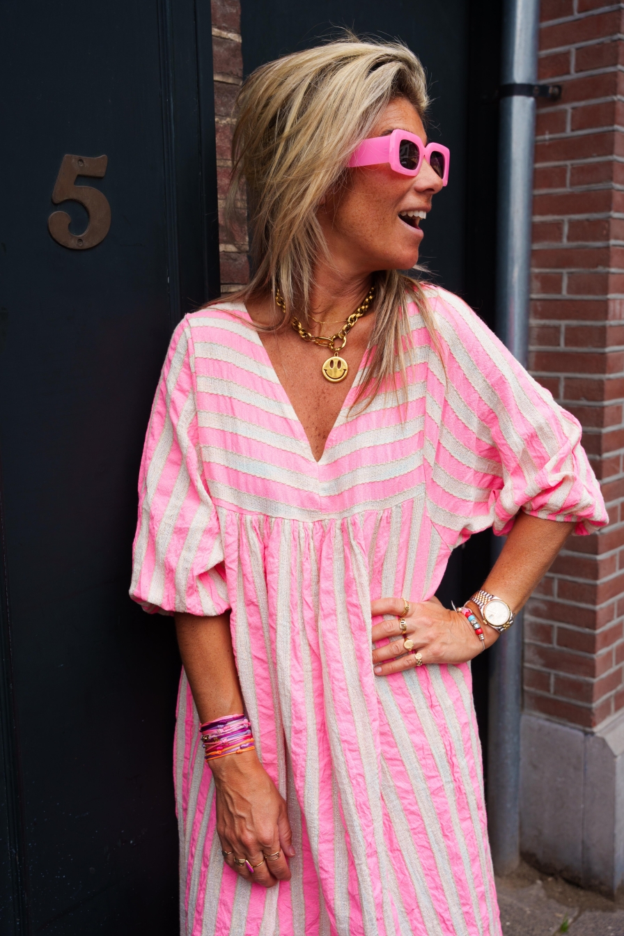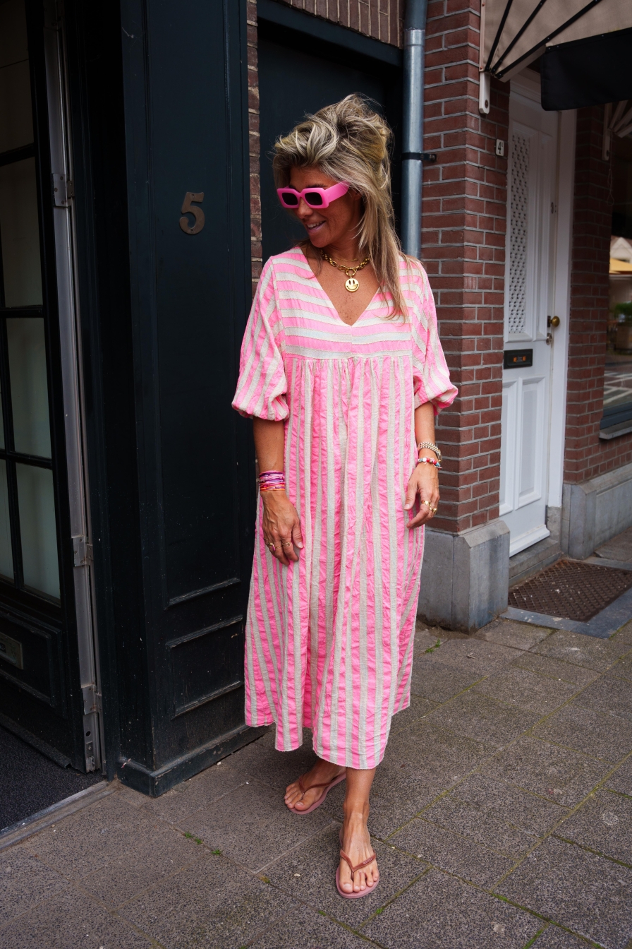 Verzending met DHL !Dress Estrella Beige - Roze