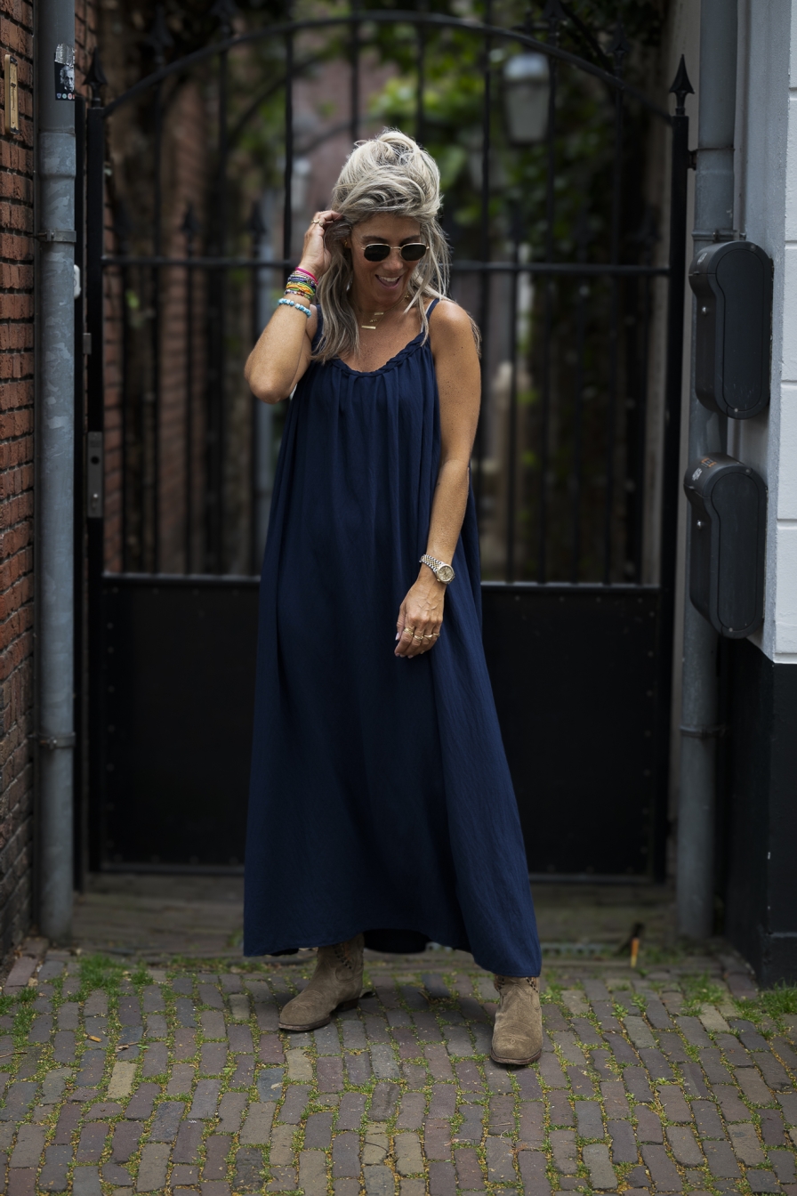 Gemaakt van luchtige viscose voor de breezy vibe. De boord op de borst en het bijpassende gevlochten centuur! Same material, same WOW-effect! Het one-size model heeft een ruime fit, alleen door de niet verstelbare spaghetti bandjes is deze niet geschikt voor fashionista's met brede schouders of grotere armen. Vandaar dat wij adviseren van maat S/M tot maat M/L.