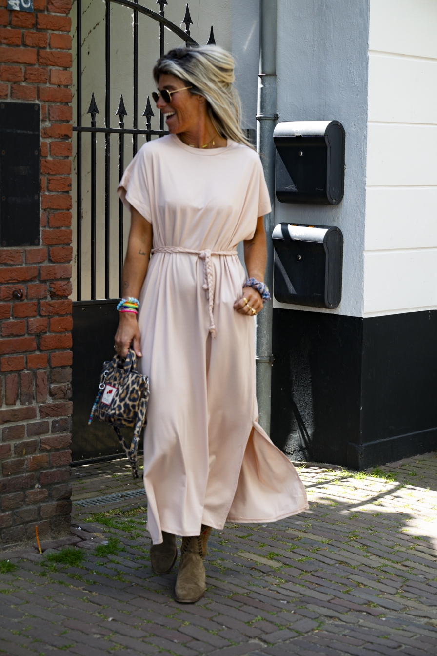 What can we say? Deze sweatdress met kapmouwtjes is dé topper van mei 2025! Gemaakt van een überzachte stof, met een heerlijke lengte, twee steekzakken, 2 splitten en een bijpassend gevlochten ceintuur. Dit one-size model, gemaakt van elastische viscose heeft veel stretch en draag je moeiteloos tot en met maat L/XL. Order now & thank us later!